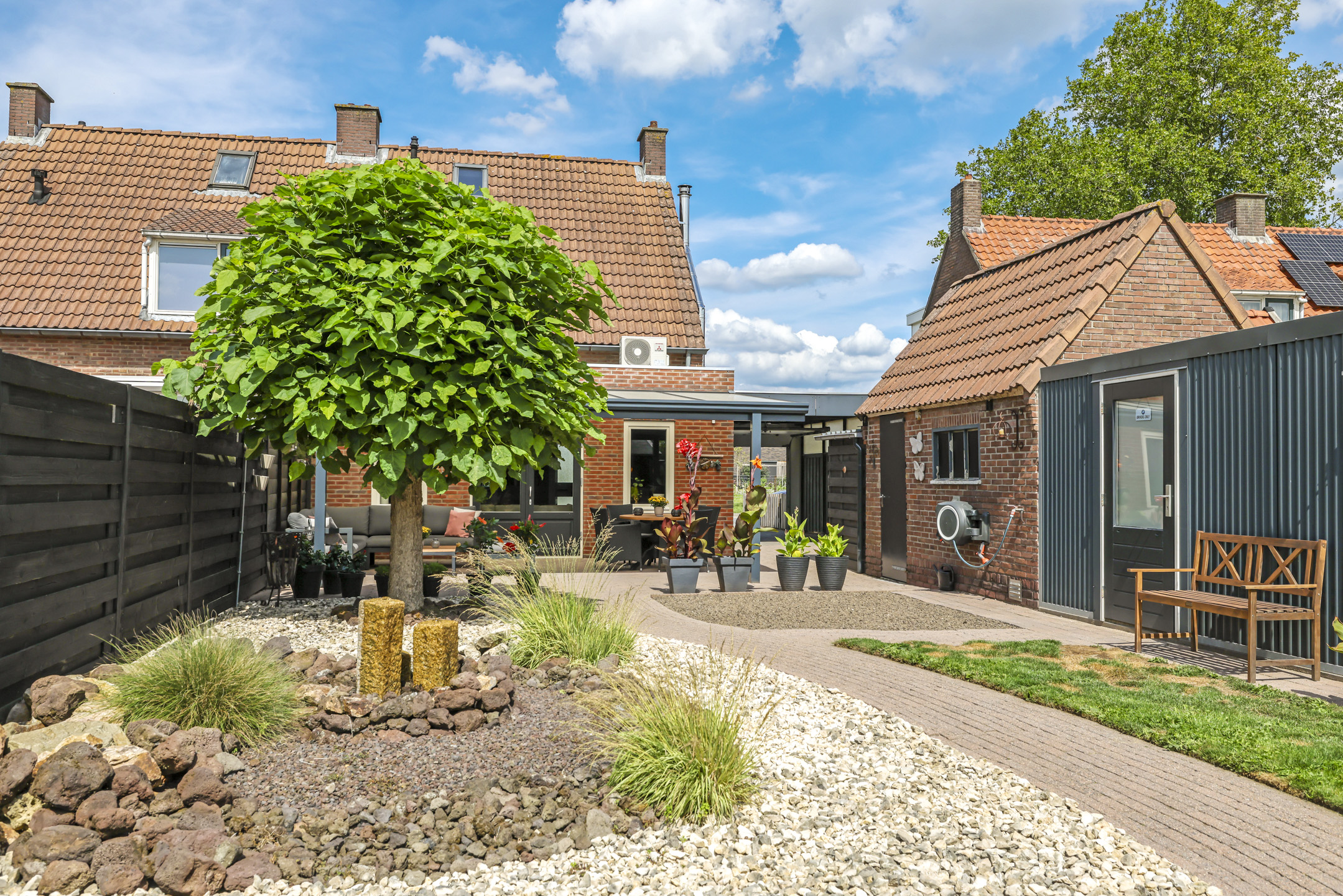 Uitgebouwde en zeer verrassende 2-ONDER-1-KAPWONING met onder meer een aangebouwde CARPORT, meerdere SCHUREN en een STUDIO met VERANDA. Deze leuke gezinswoning heeft een grote achtertuin van maar liefst 23 meter diep op het zonnige zuiden. Aan de voorzijde is een OPRIT aangelegd waardoor je 2 auto’s naast elkaar (excl. carport) op eigen terrein kunt parkeren.