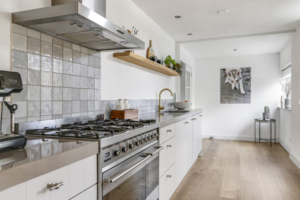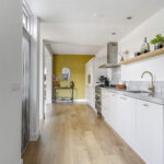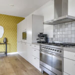 Opvallend is het open karakter van de keuken die maximaal opengebroken is. Bovendien is de keuken in 2017 verder uitgebouwd waardoor er een inpandige verbinding met het achterhuis is ontstaan.