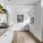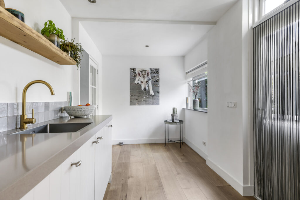 Bijkeuken met witgoedaansluitingen en vaste kastenwand