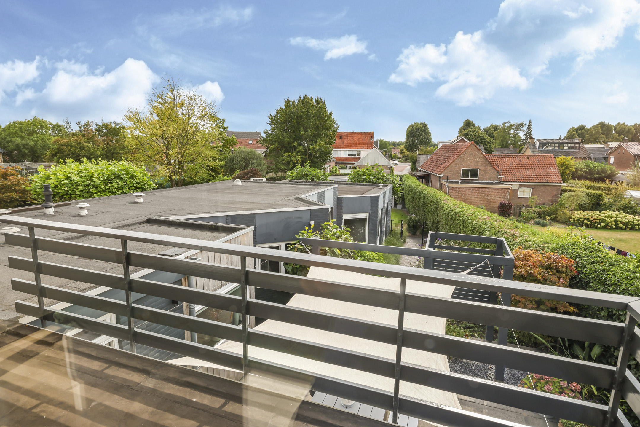 Het achterhuis heeft een plat dak dat overigens nog relatief nieuw is. Om het op een zomerdag ook in het achterhuis aangenaam te houden, is hier een 2e airconditioning geplaatst.