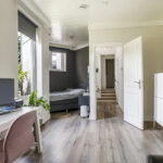Ben je een groot (samengesteld) gezin, dan kun je hier waarschijnlijk prima uit de voeten. De hoofdwoning is breed opgezet en dat merk je in de woonkamer en keuken. Hier kun je bijvoorbeeld eenvoudig een lange 8-persoons eettafel kwijt zonder dat het ten koste gaat van het ruimtelijke gevoel. Op de verdieping zijn 3 volwaardige slaapkamers en de 1e badkamer te vinden, maar wanneer je vanuit de keuken het achterhuis in loopt, kun je hier van de 2 grote slaapkamers eenvoudig 4 slaapkamers maken. Dan ga je van 5 naar zelfs 7 slaapkamers. De 2e badkamer is al aanwezig, evenals het 3e toilet. De slaapkamer aan het einde van de lange gang kan overigens een prima woonkamer zijn waarbij je de mogelijkheid hebt om een 2e keukenblok te plaatsen. Hierdoor leent deze woning zich perfect voor mantelzorg of een twintiger die nog een tijdje thuis maar wel op zichzelf wil wonen.