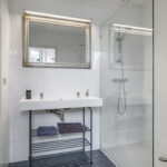 Badkamer 1 met inloopdouche, 2-persoons wastafelmeubel en 2e toilet