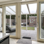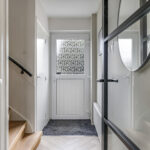 Stijlvolle, stalen deur tussen woonkamer en hal