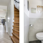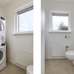 De voormalige badkamer heeft plaats gemaakt voor een toilet (zwevend geplaatst) en de witgoedaansluitingen. De ruimte is eveneens verzorgd afgewerkt met onder meer hetzelfde tegelwerk als in de badkamer.
