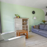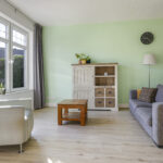 Tuingerichte woonkamer met trap/voorraadkast en tuindeur