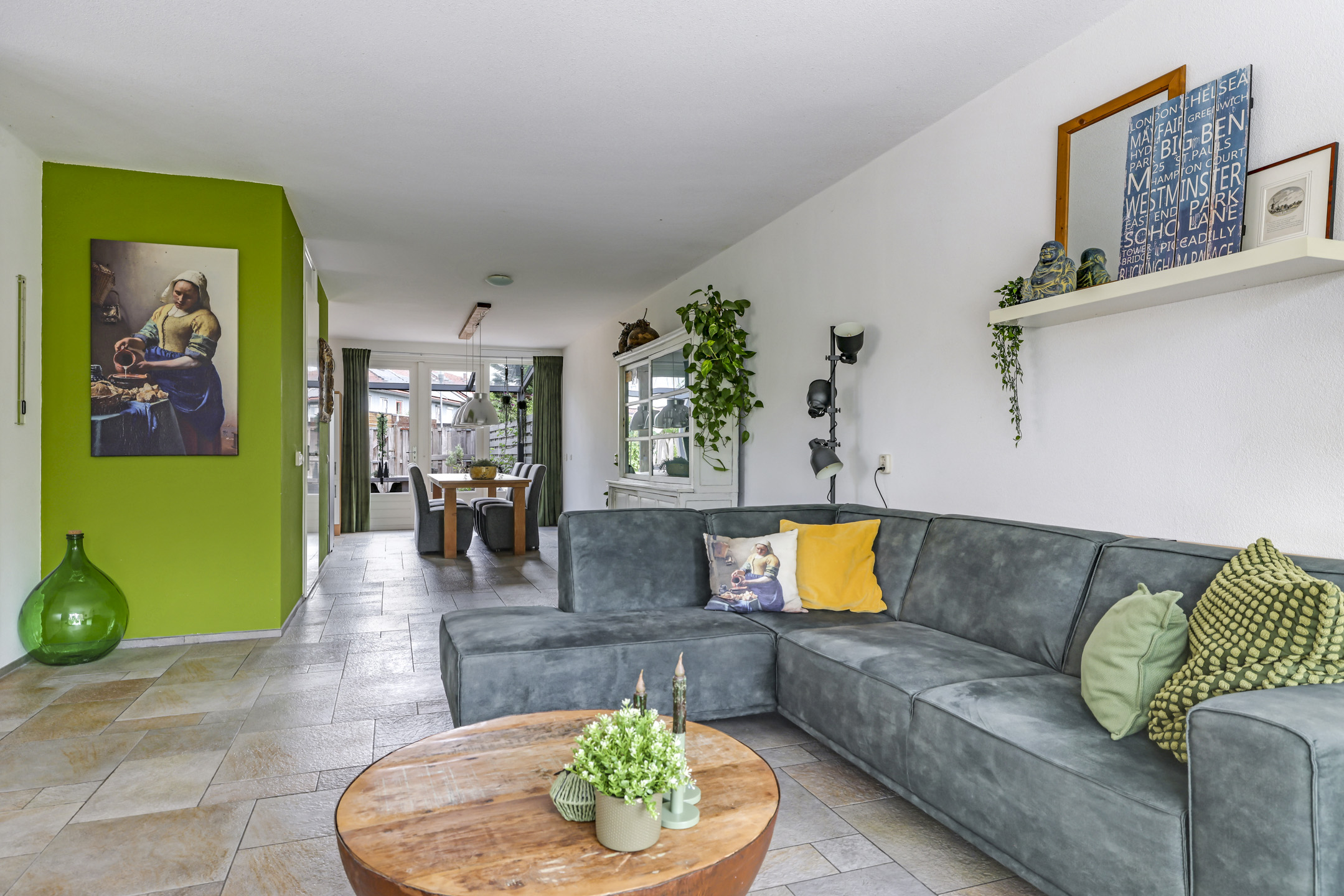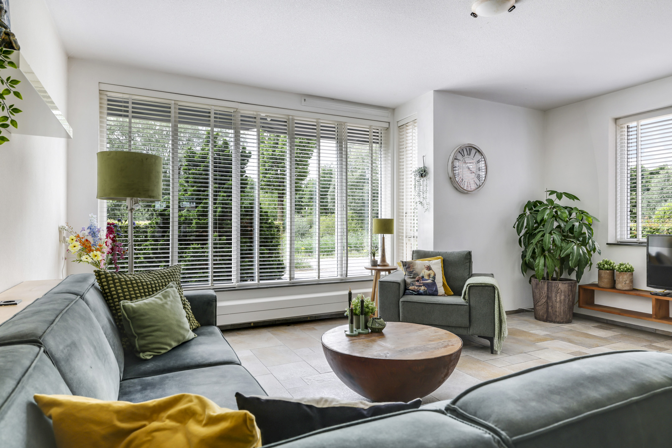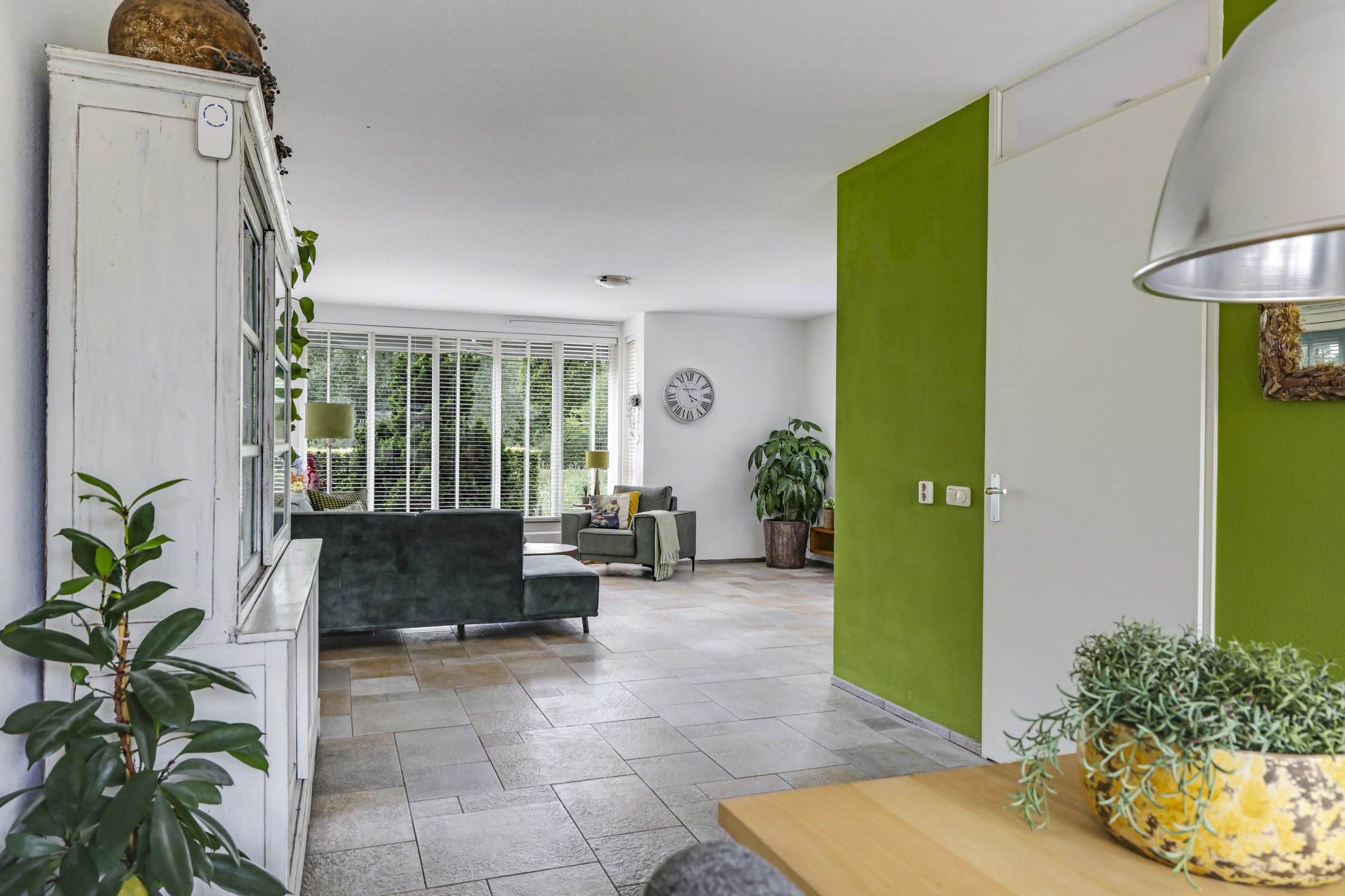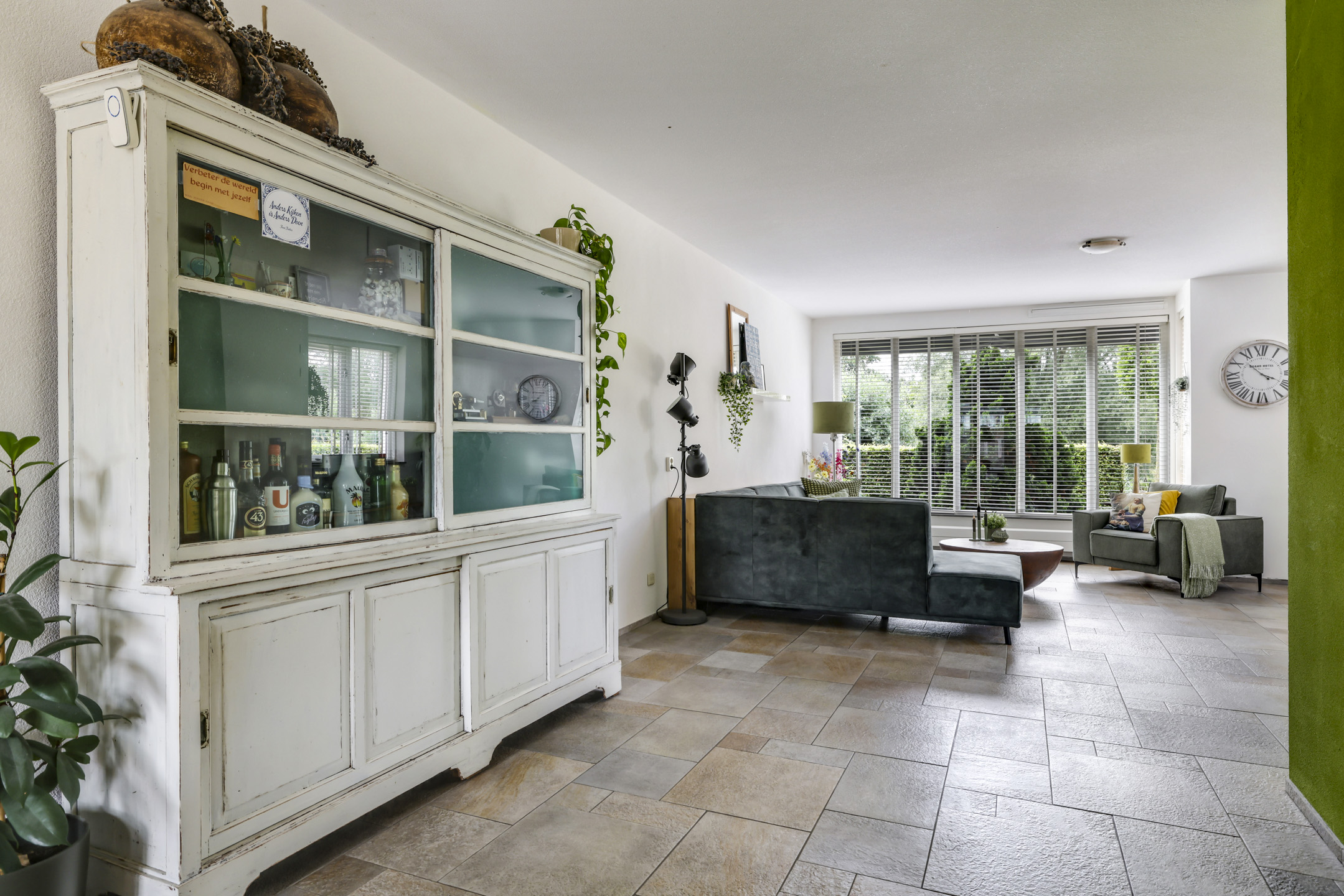 Wanneer je de woonkamer binnenkomt zal de ruim opgezette ruimte en de vele lichtinval je direct opvallen. Aan de voorzijde van de woning is een erker geplaatst wat zorgt voor een speels effect. Daarbij zorgt de erker ook voor een prachtig zicht op het voorgelegen park met waterpartij. Doordat de ruimte goed is bemeten kan je hier lekker grote meubels kwijt. In de hoek van de woonkamer is een trapkast aanwezig voor de nodige opbergruimte. Aan de achterzijde zorgen openslaande tuindeuren ervoor dat je in de zomerdag de woonkamer en de tuin bij elkaar kan betrekken.