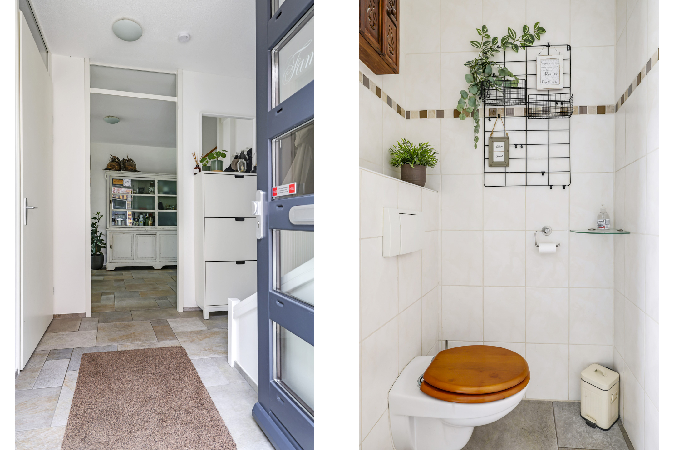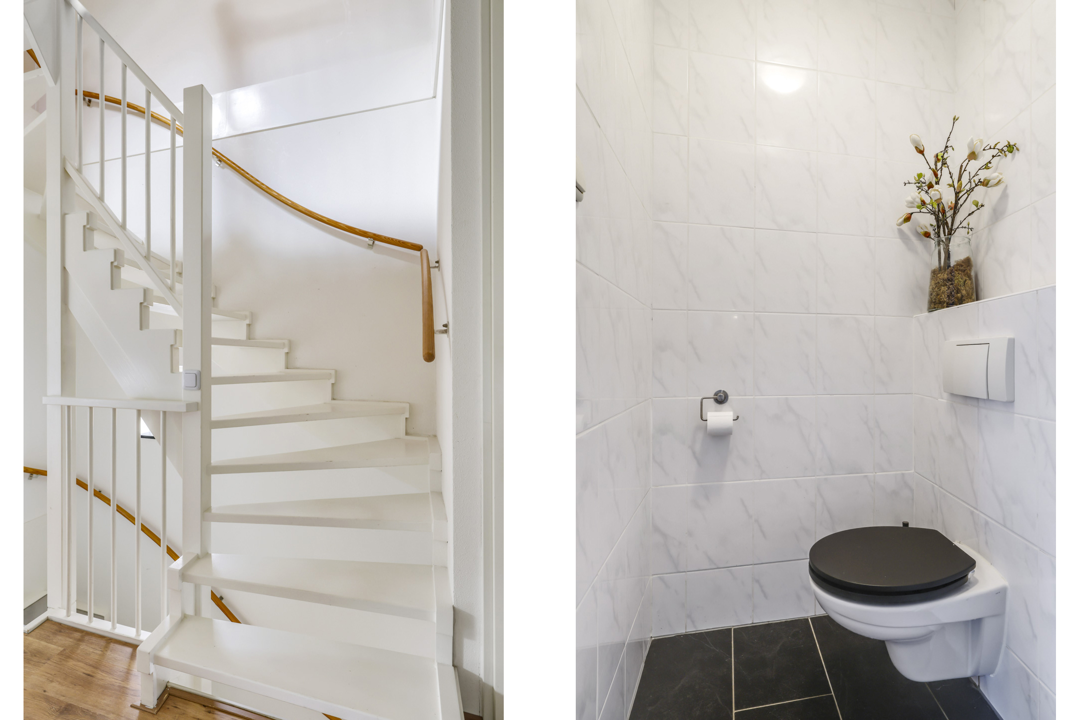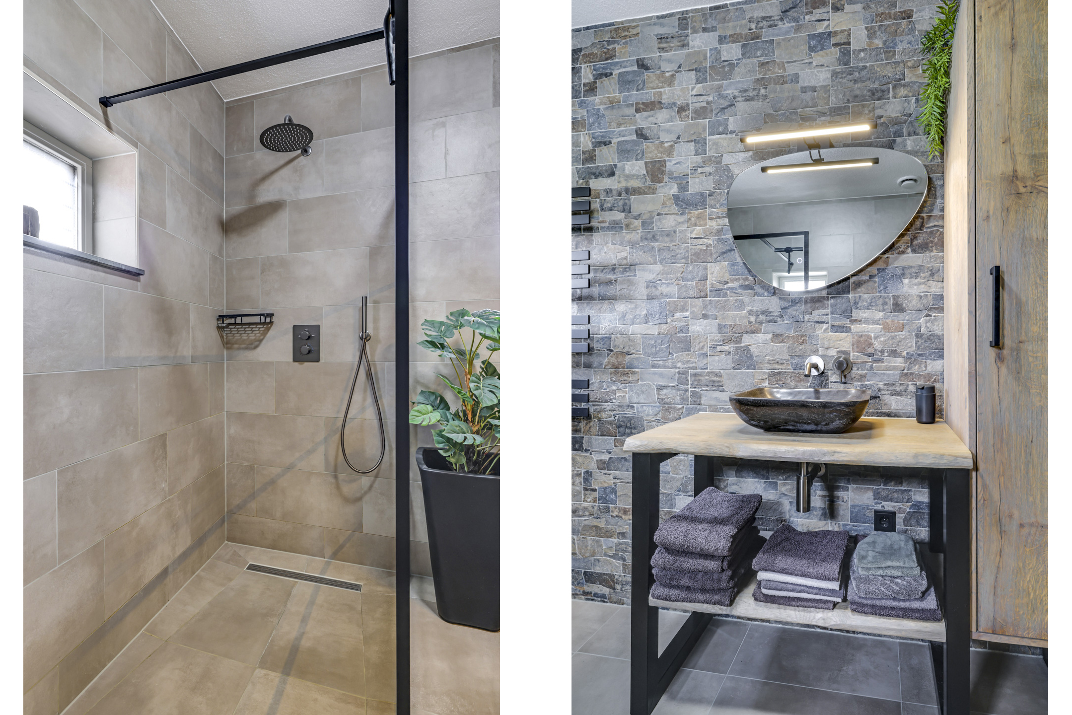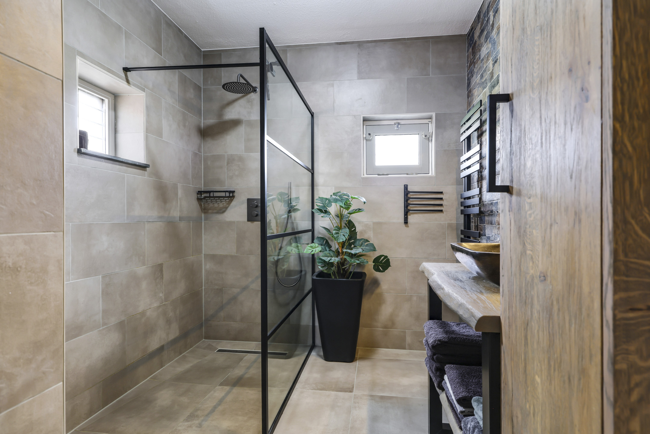 In 2024 heeft de badkamer helemaal vernieuwd. De ruimte is mooi ingericht waarbij gebruik is gemaakt van natuurlijke kleuren en materialen. Er is een ruime inloopdouche geplaatst waarbij het leidingwerk verzorgd in de wand is weggewerkt. Daarbij is gekozen voor zwarte accenten wat het helemaal van deze tijd maakt. Het wastafelmeubel bestaat uit een vrijstaande waskom op een houten blad waarbij eveneens het leidingwerk uit het zicht valt. Naast het wastafelmeubel is een grote kast aanwezig voor de nodige bergruimte. Opvallend is dat het toilet zich separaat van de badkamer op de overloop bevindt. Dit voorkomt ‘file’ op de badkamer op een drukke ochtend.