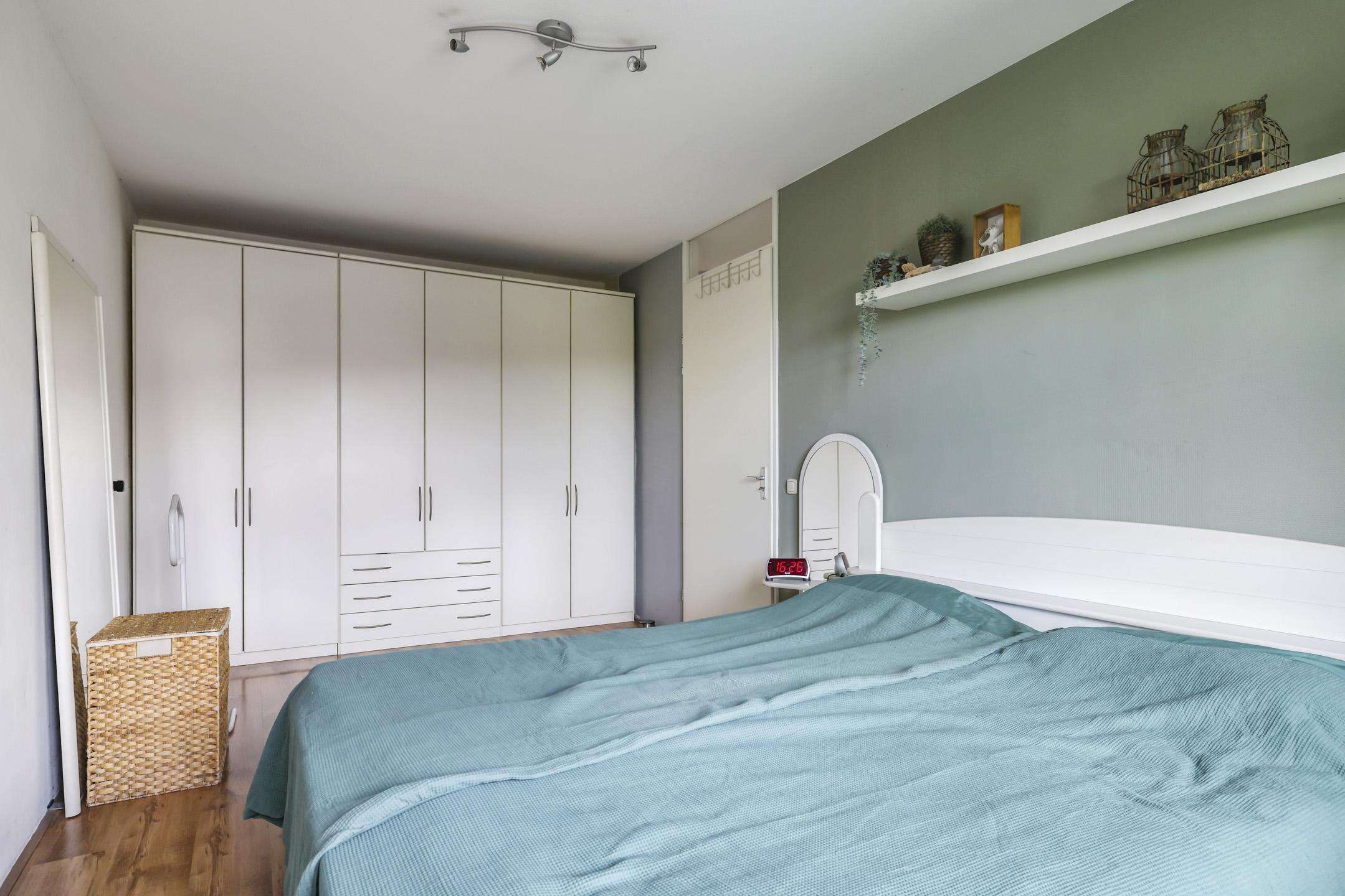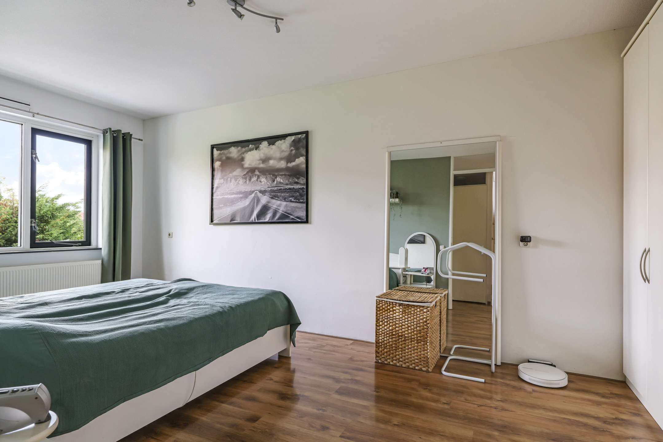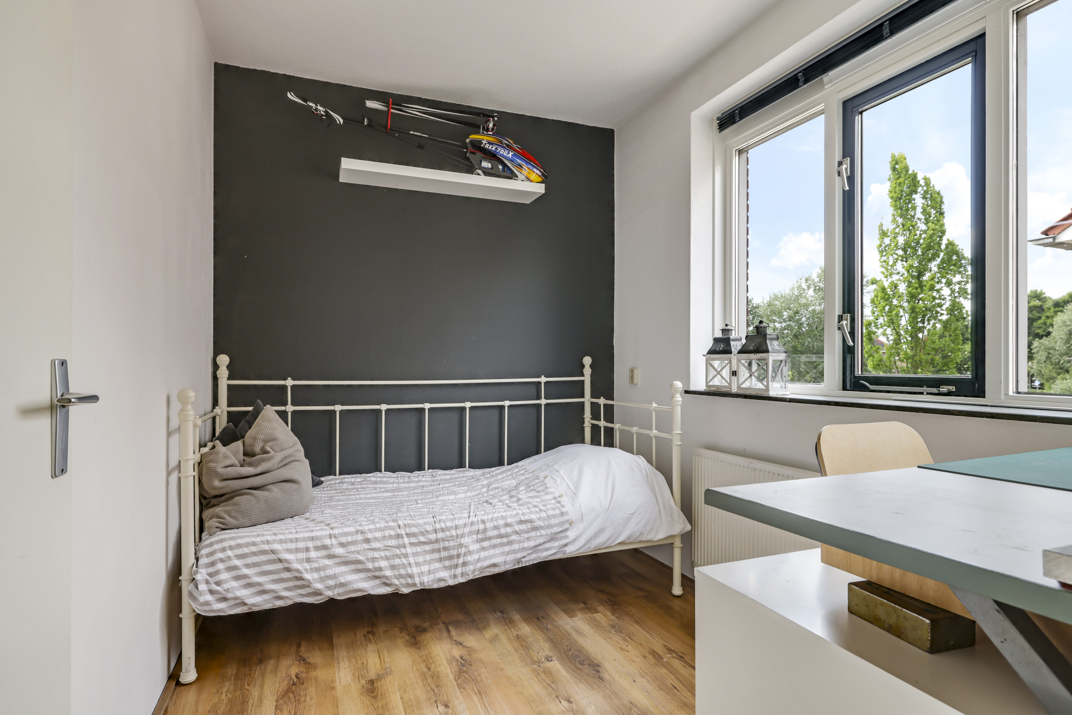 Op deze woonlaag schakelt de overloop 3 slaapkamers en de badkamer aan elkaar. De slaapkamers zijn allen verrassend ruim te noemen en zijn respectievelijk 19m², 13m² en 8m² groot. Een kleine kamer zit er dan ook niet tussen. Door de hoge plafonds en rechte wanden zijn de kamers eenvoudig in te richten en kan je hier bijvoorbeeld grote linnenkasten kwijt voor je garderobe. De slaapkamers aan de voorzijde bieden wederom uitzicht over het voorgelegen park De Rietgraaf. Op de vloer ligt een verzorgde laminaatvloer welke eenduidig is doorgelegd op de slaapkamers.