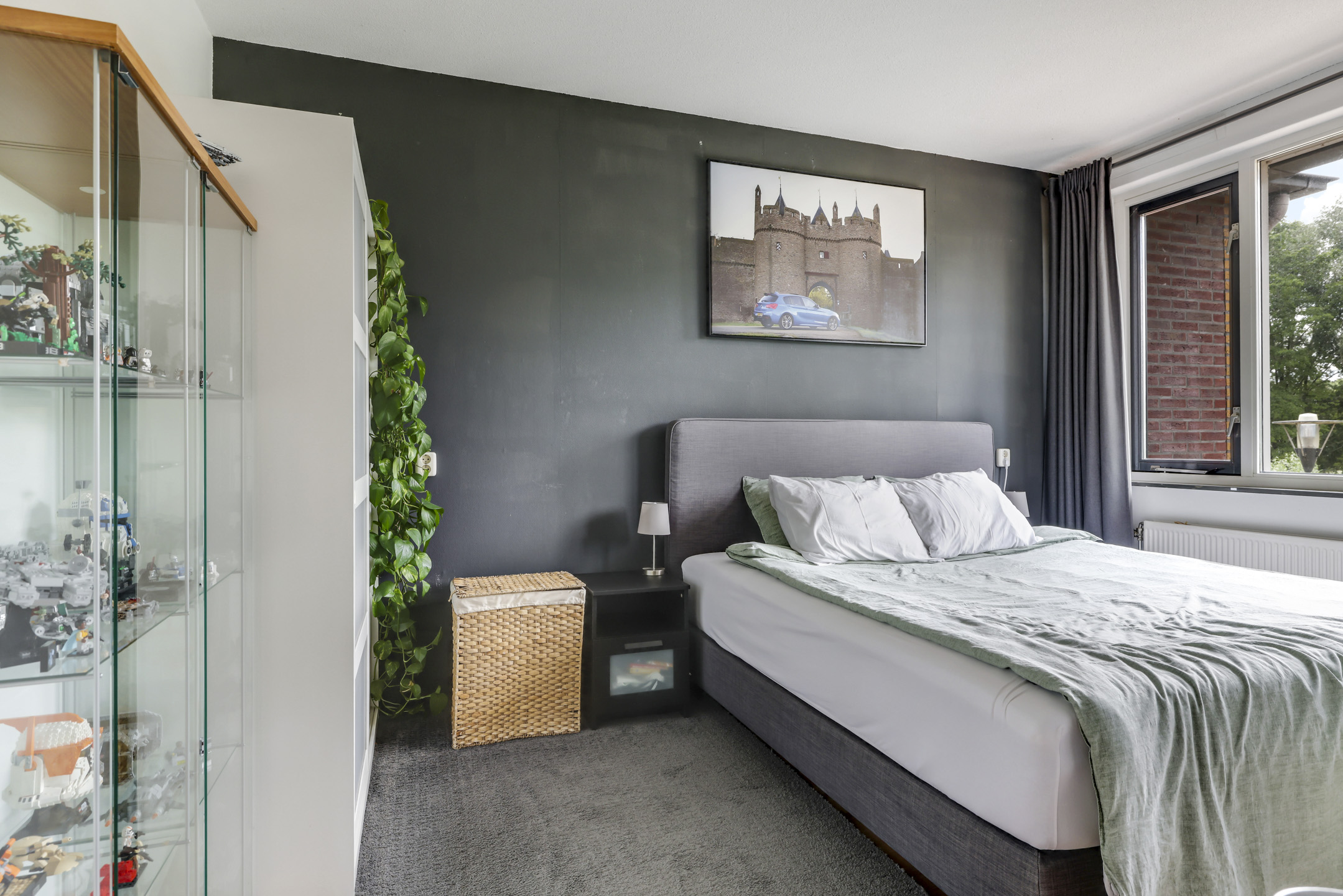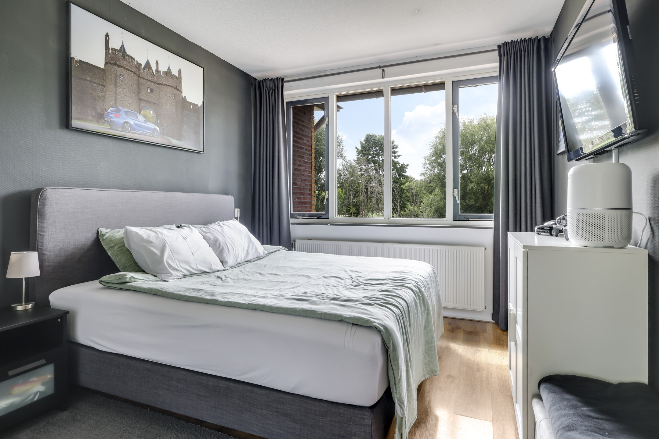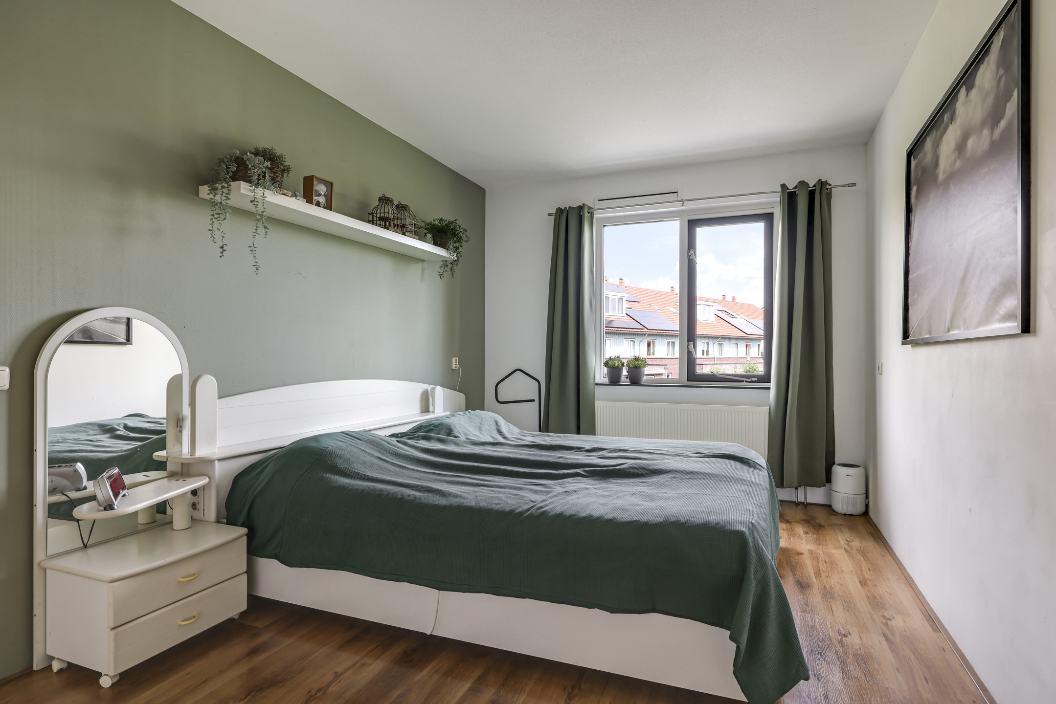 Op deze woonlaag schakelt de overloop 3 slaapkamers en de badkamer aan elkaar. De slaapkamers zijn allen verrassend ruim te noemen en zijn respectievelijk 19m², 13m² en 8m² groot. Een kleine kamer zit er dan ook niet tussen. Door de hoge plafonds en rechte wanden zijn de kamers eenvoudig in te richten en kan je hier bijvoorbeeld grote linnenkasten kwijt voor je garderobe. De slaapkamers aan de voorzijde bieden wederom uitzicht over het voorgelegen park De Rietgraaf. Op de vloer ligt een verzorgde laminaatvloer welke eenduidig is doorgelegd op de slaapkamers.
