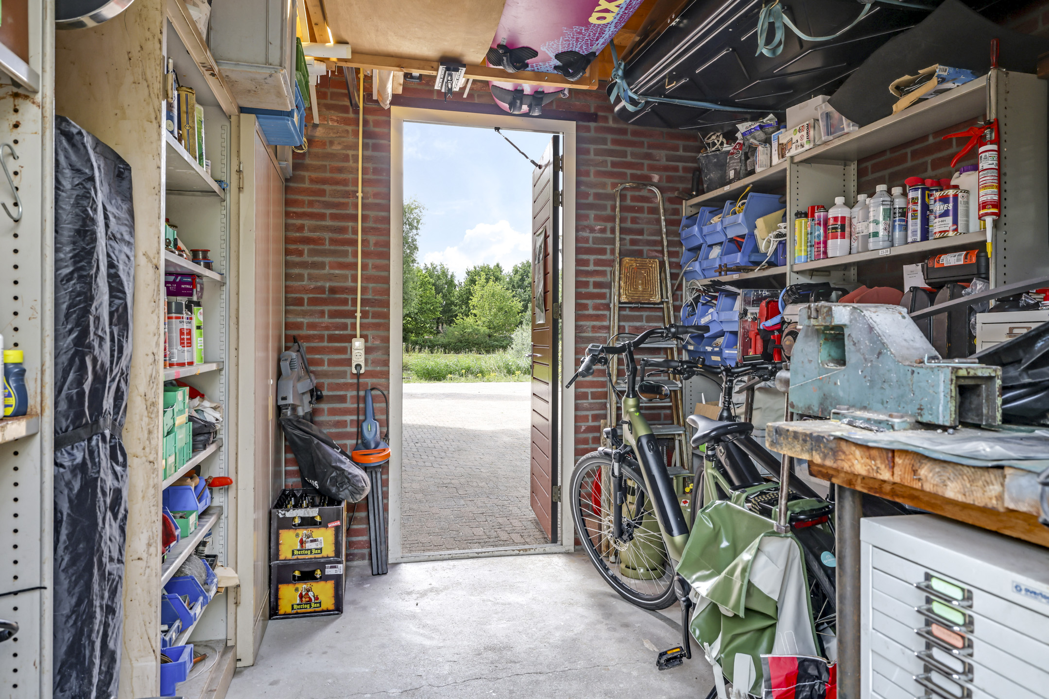 Naast de woning is een berging aangebouwd. Deze stenen berging is voorzien van een deur in zowel de voor- als de achterzijde waardoor je er als het ware doorheen loopt. De berging is voorzien van elektra en zorgt mede door de hoogte van de ruimte voor veel stallingsruimte.