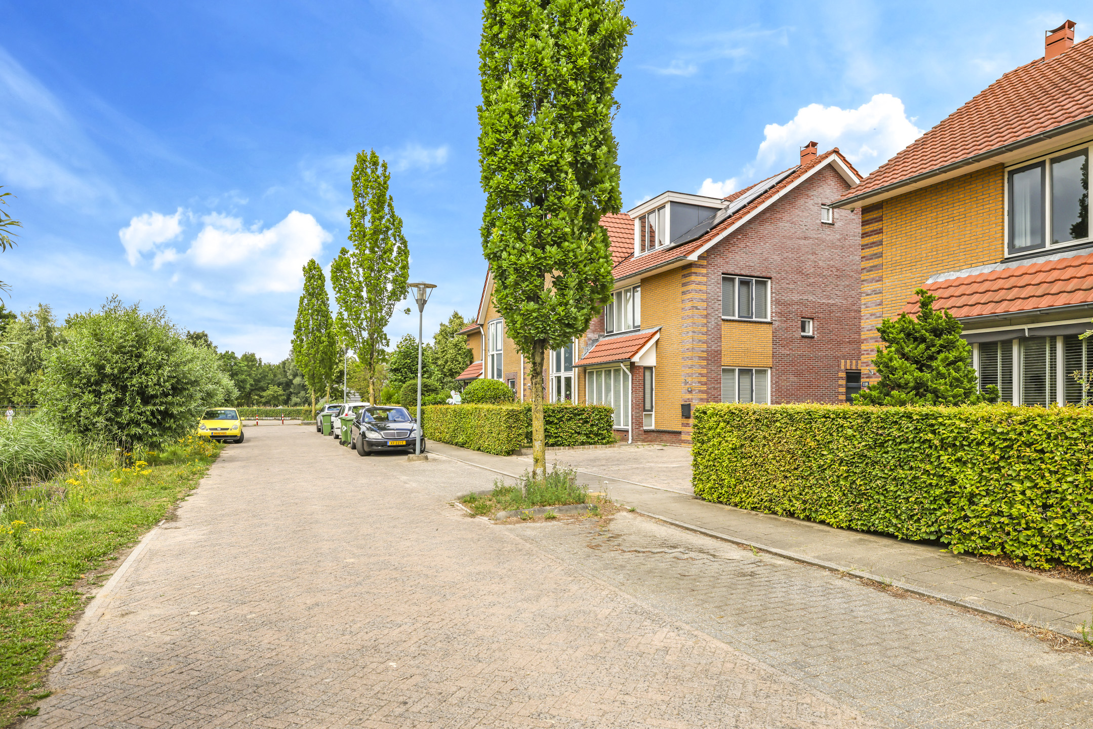 De woning is vooral aan de voorzijde prachtig gelegen. Door de ligging direct aan het park de Rietgraaf geniet je hier van een zicht op veel groen en water. De woning staat daarbij aan een doodlopende straat waardoor je amper autoverkeer in de straat zult hebben. Ook een speeltuin voor de kinderen is nabij.