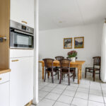 De woonkamer is aan de voorzijde gelegen waarbij je vanaf de bank een vrij uitzicht geniet op de voorgelegen groenstrook en waterpartij. Het biedt een ruime zithoek met plaats voor een lekkere hoekbank. Leuk detail is het aanwezige rookkanaal waardoor je (indien gewenst) een houtkachel zou kunnen plaatsen. In de overgang naar de keuken (aan de achterzijde) is er ruimte voor een 6-persoons eettafel.