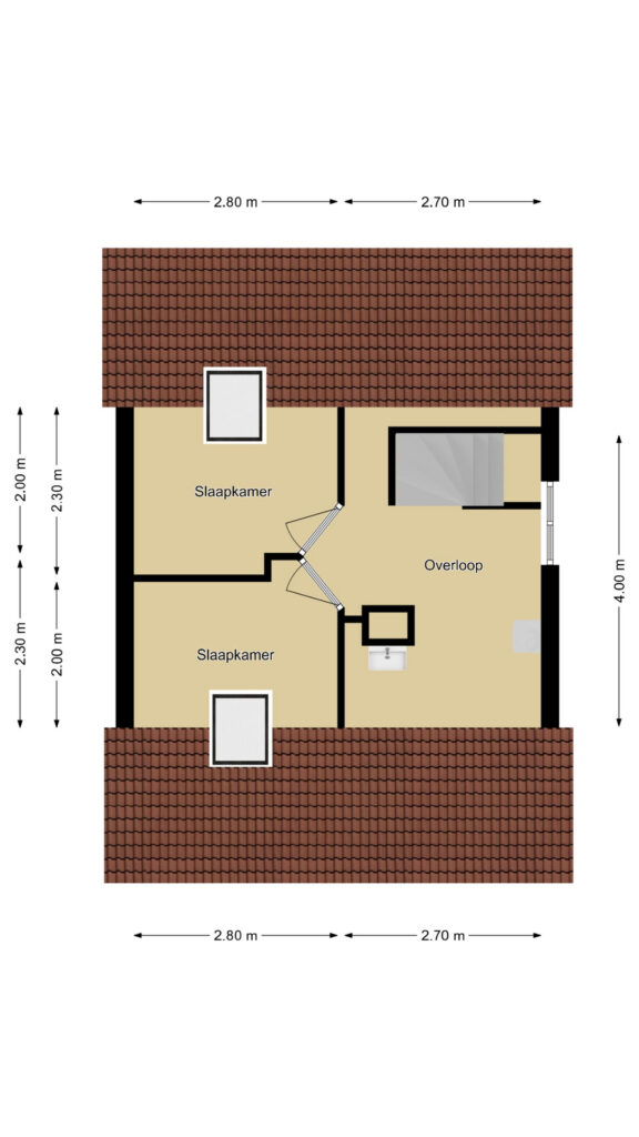 Eénmaal op de 2e verdieping zul je verrast worden door de ruimte die deze woonlaag te bieden heeft. Dit komt door het grote zijgevelraam én de hoge nok die meer dan 3 meter hoog is. Normaliter betreft het een open ruimte, maar bij deze woning is het ingedeeld met een 4e en een 5e slaapkamer. Beide kamers zijn gelijkwaardig en bovendien voorzien van een groot dakvenster. Onder de schuine zijden zijn knieschotten aangebracht waar je de nodige spullen kunt opbergen.