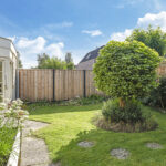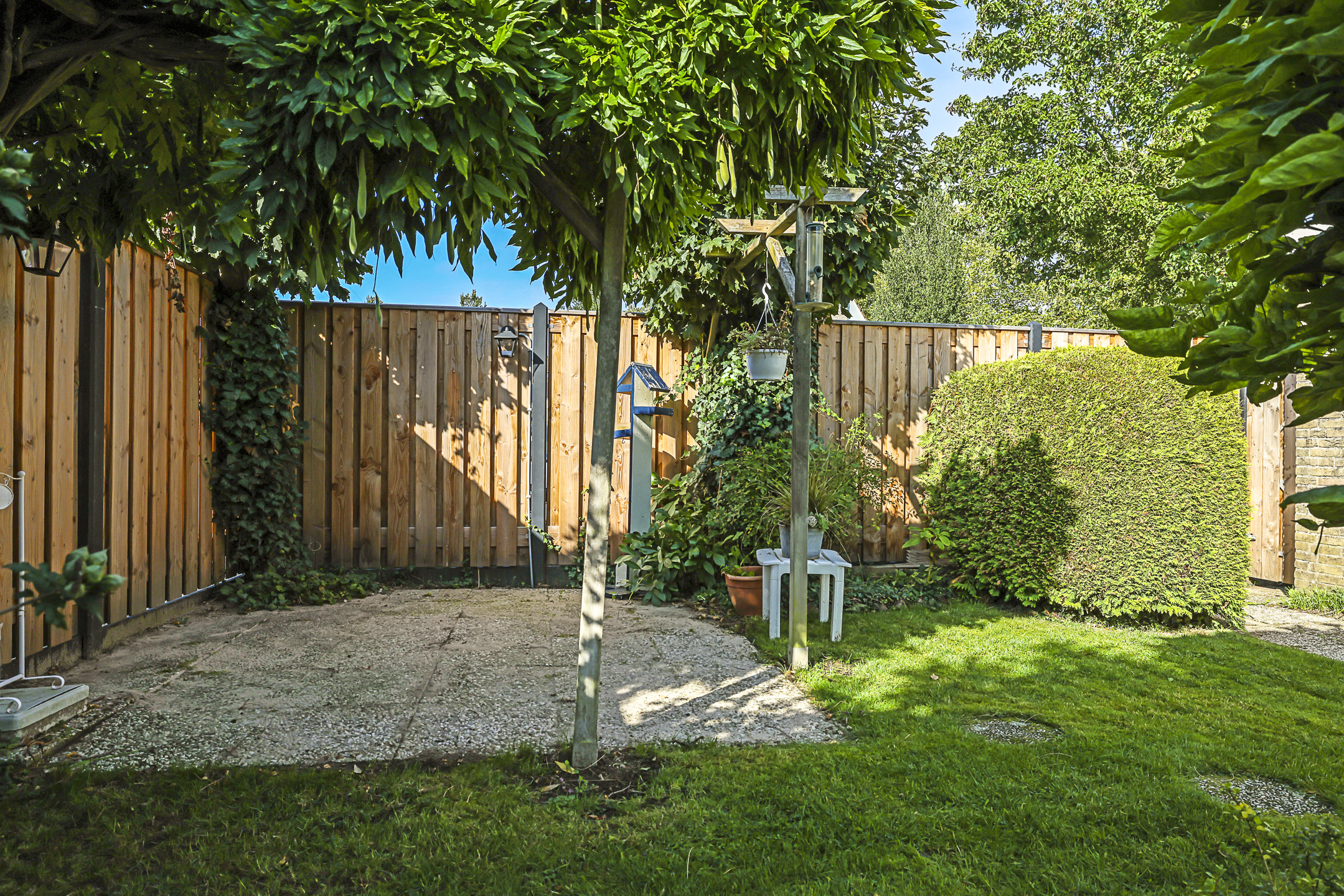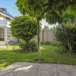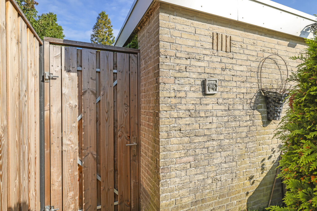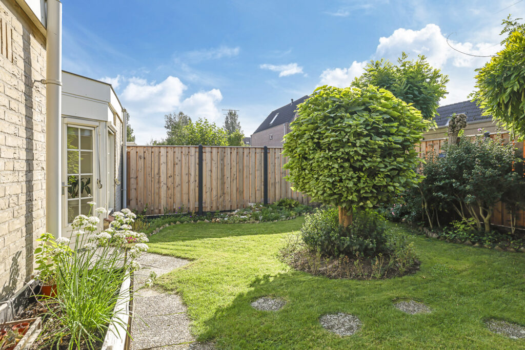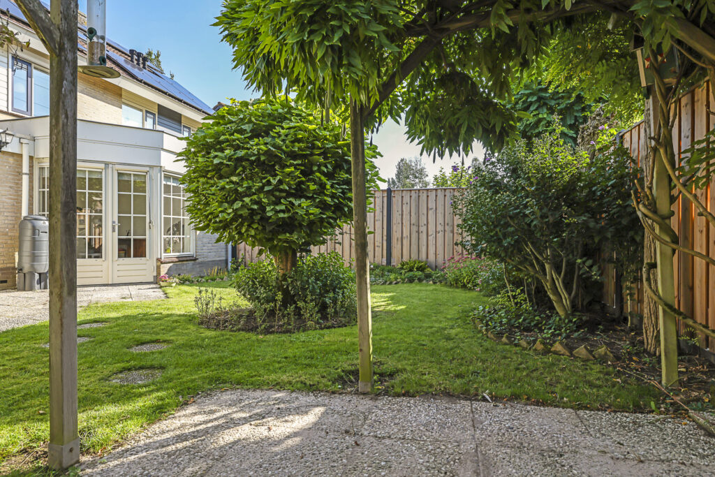 Bij een leuk huis hoort ook een aantrekkelijke achtertuin. Dit is zo’n tuin waar je veel privacy en zonuren geniet. De tuin ligt namelijk pal op het zuiden en achter de tuin is er sprake van ‘laagbouw’ waardoor er nauwelijks tot geen inkijk is. En ook de vrije ligging aan de zijkant draagt daar aan bij doordat je aan de rechterzijde geen directe buren hebt. Bij veel 2-kappers in het segment heb je géén achterom en moet je via de garage (binnendoor) om in de achtertuin te komen. Bij deze woning heb je een zijpad vanaf de oprit langs de garage op waarbij een poort de achtertuin afsluit. Dit is ideaal voor wanneer je bijvoorbeeld gaat snoeien in de tuin en je langs de woning op kunt lopen. Bovendien is de tuin net even een meter breder dan gemiddeld.
