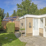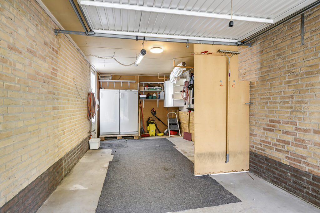 Naast de woning is een stenen garage gebouwd (2,9m x 6m). De garage is voorzien van een stalen kanteldeur, elektra-aansluiting, wateraansluiting en een afvoer. Een auto rijden we tegenwoordig niet snel meer naar binnen, maar het is een bijzonder fijne stallingsruimte voor (elektrische) fietsen en/of een motor. Ook zou je er een werkbank kwijt kunnen.