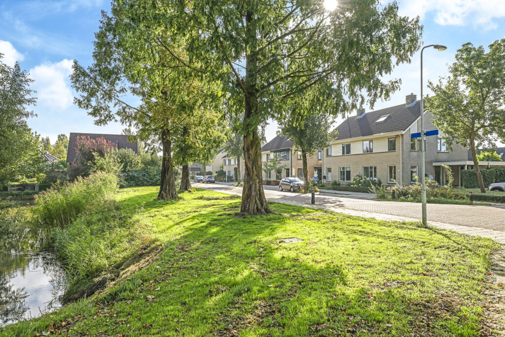 Deze woning vinden we terug in een rustige en kindvriendelijke jaren ’90 woonwijk. De wijk is vertegenwoordigd door alle type woningen, van vrijstaand tot rijwoningen. Deze woning ligt gunstig tegenover een groenstrook en waterpartij. Hierdoor kijk je niet bij overburen naar binnen. In nieuwbouwwijken zien we vaak een ‘parkeerprobleem’ voor bezoekers, maar daar hoef je hier niet direct bang voor te zijn. Langs de straat zijn parkeerhavens te vinden, evenals om de hoek aan de Gieser Wildeman. Deze straat is tevens een speeltuin te vinden waar kinderen uit de wijk elkaar opzoeken.