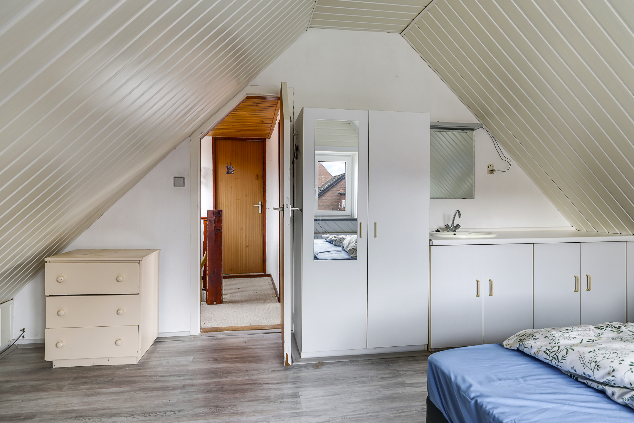 Slaapkamer (voorzijde) met wastafelmeubel