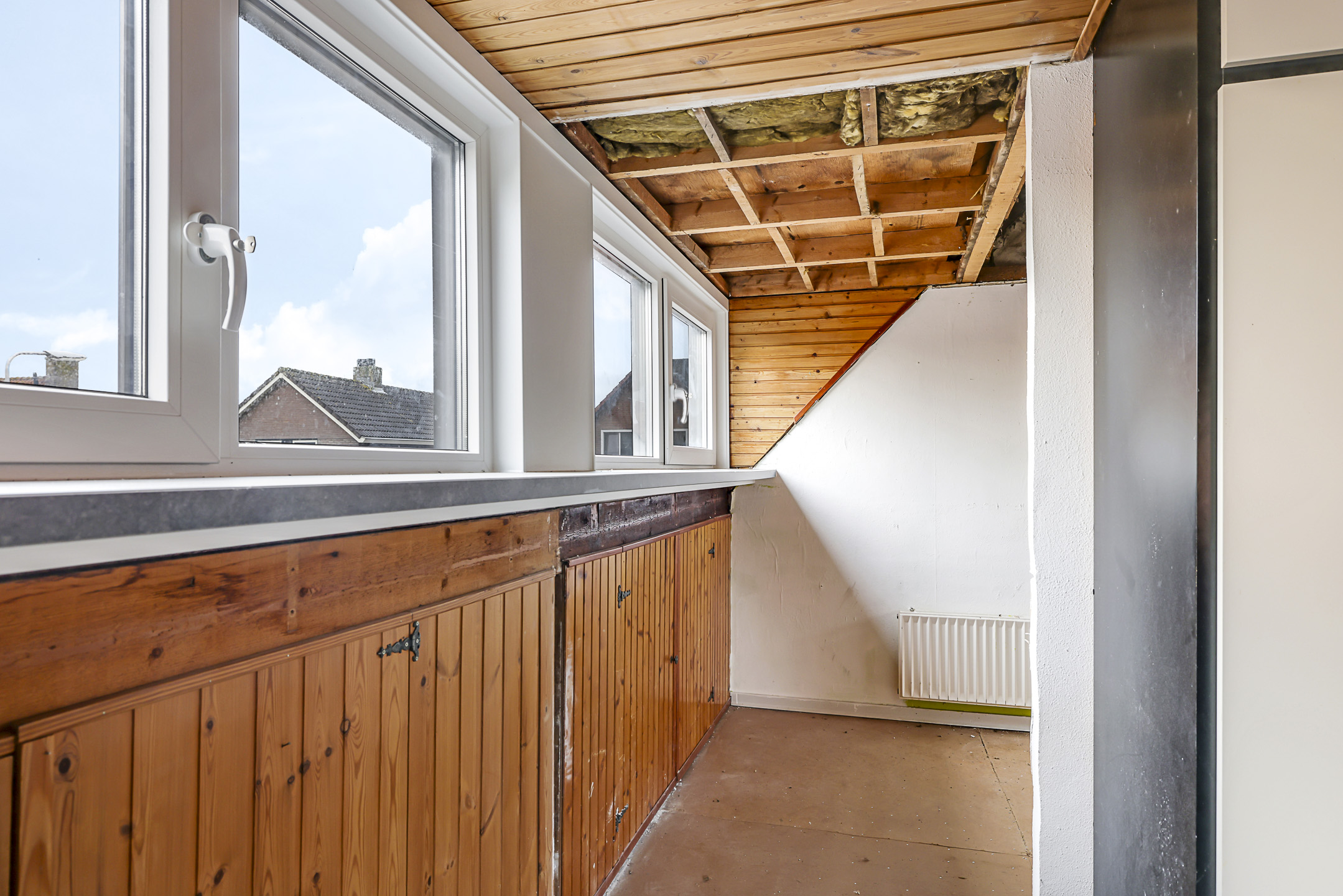 Slaapverdieping is verouderd en deels gesloopt om opnieuw af te werken / her in te delen