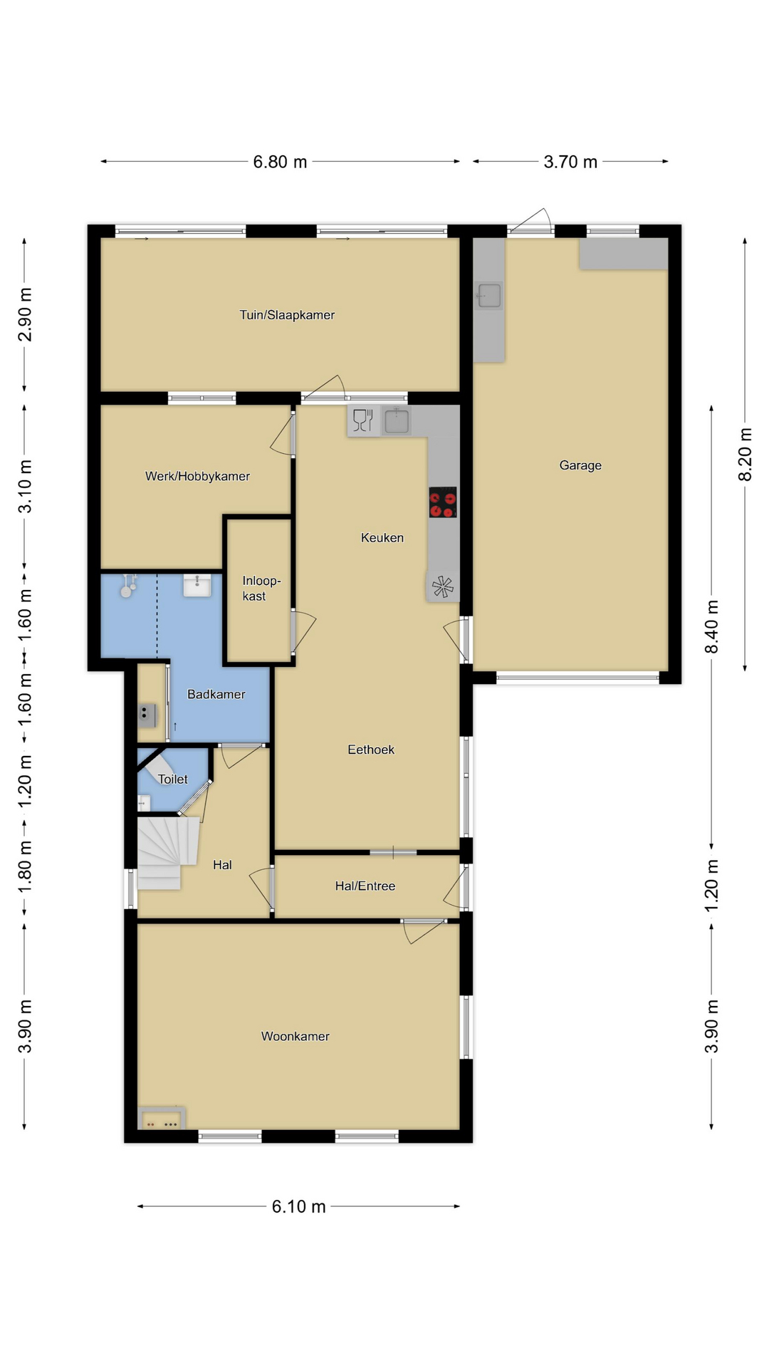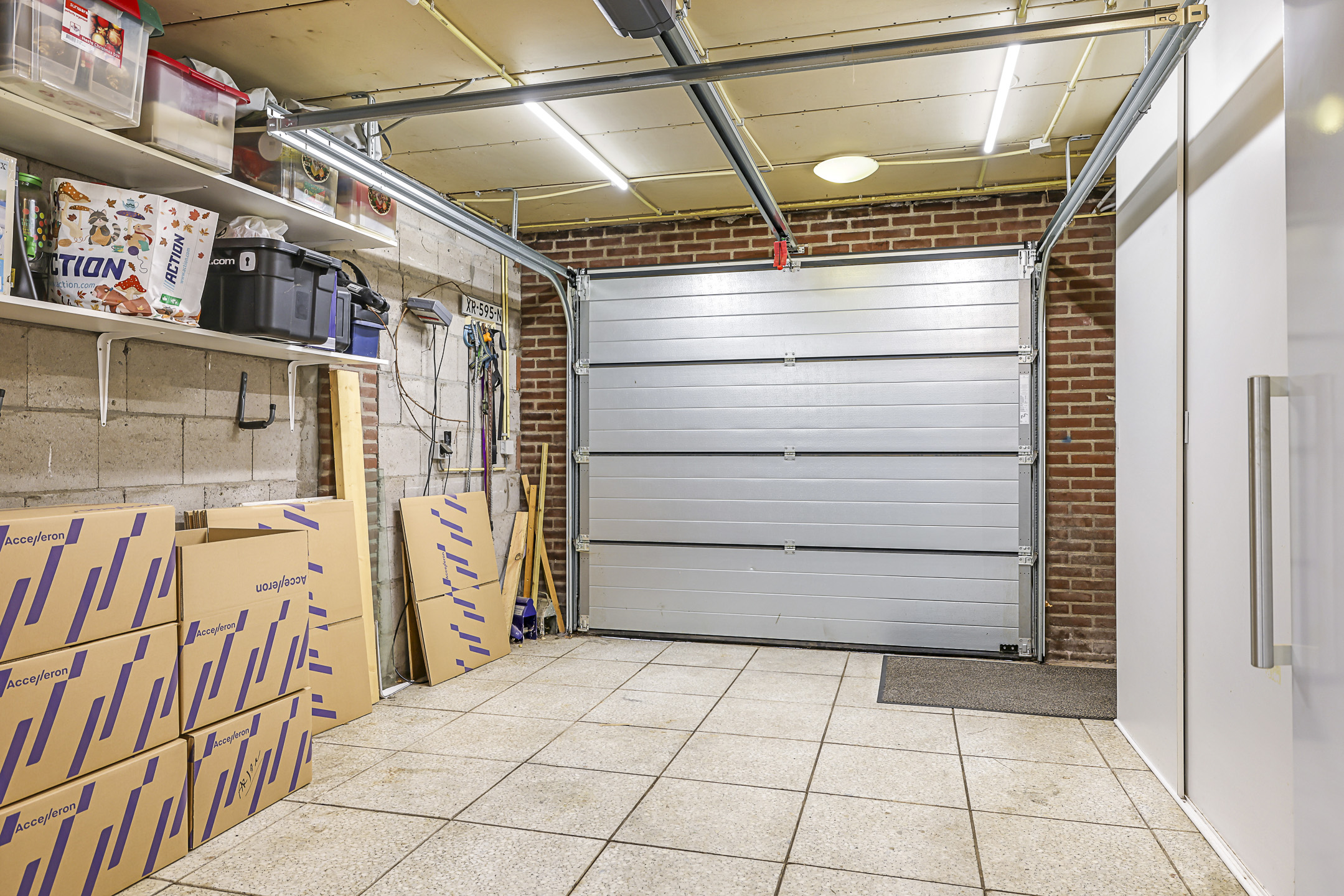 Brede en diepe garage (3,7m bij 8,2m) met brede, elektrisch bedienbare sectionaaldeur