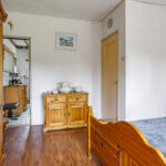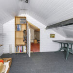 Met een vaste (steile) trap bereiken we de 1e verdieping. Deze woonlaag heeft een nokhoogte van 2,2 meter en is daarmee niet enorm hoog. Toch vinden we hier een multifunctionele ruimte alsmede een 3e slaapkamer. Deze slaapkamer telt meer dan 12m2, hetgeen gemeten is vanaf 1,5 meter hoogte. Dus eigenlijk is deze kamer nog groter. Een zijgevelraam zorgt daarbij voor de nodige lichtinval.