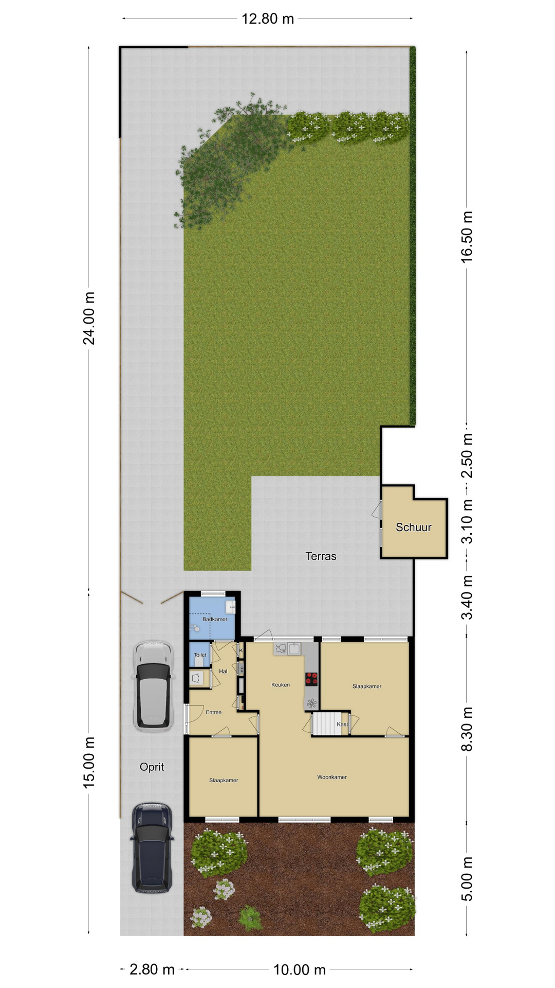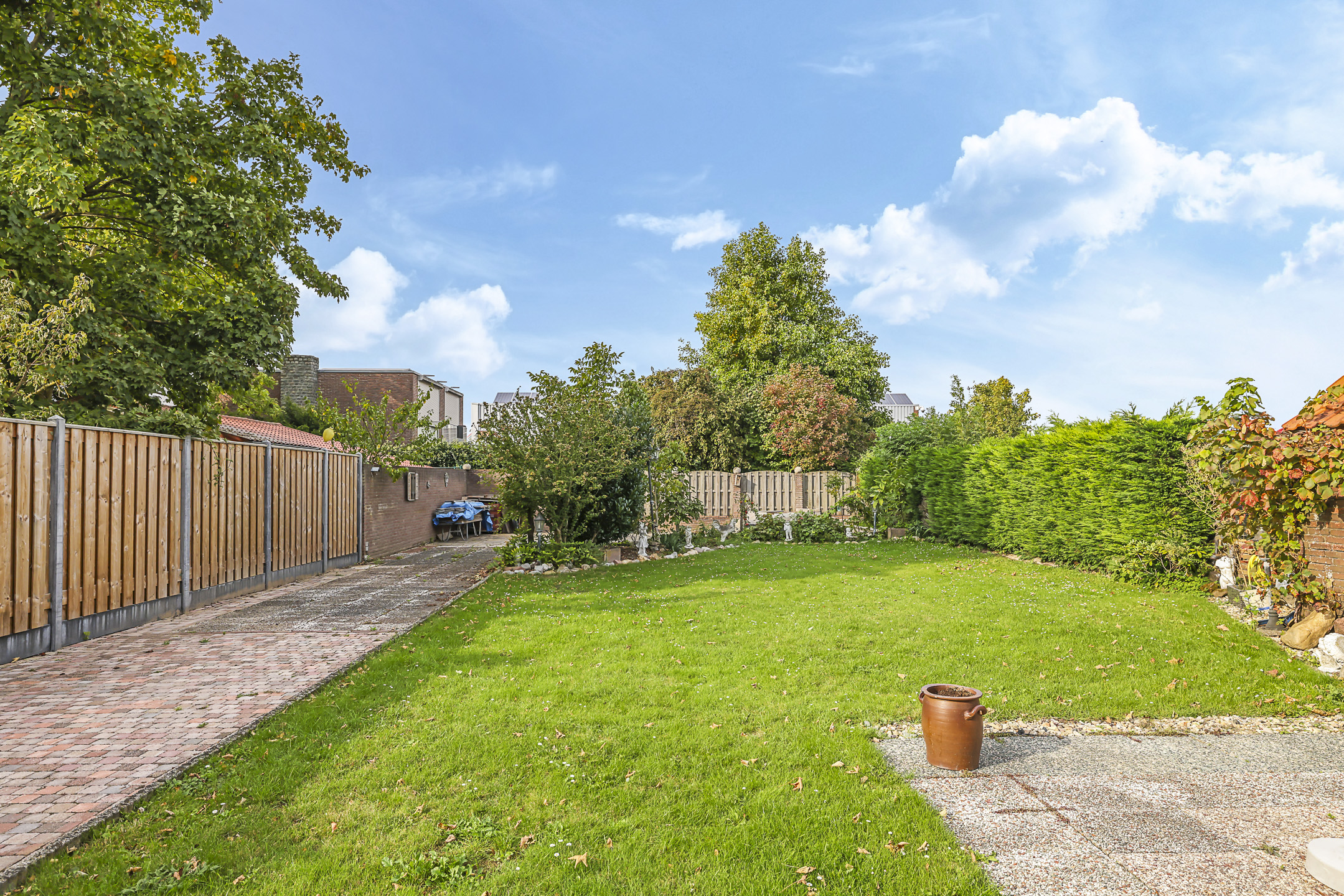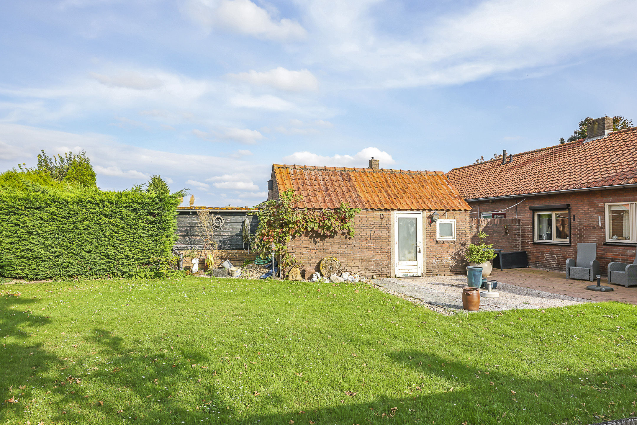 Verrassend grote achtertuin met veel vrijheid en zonuren