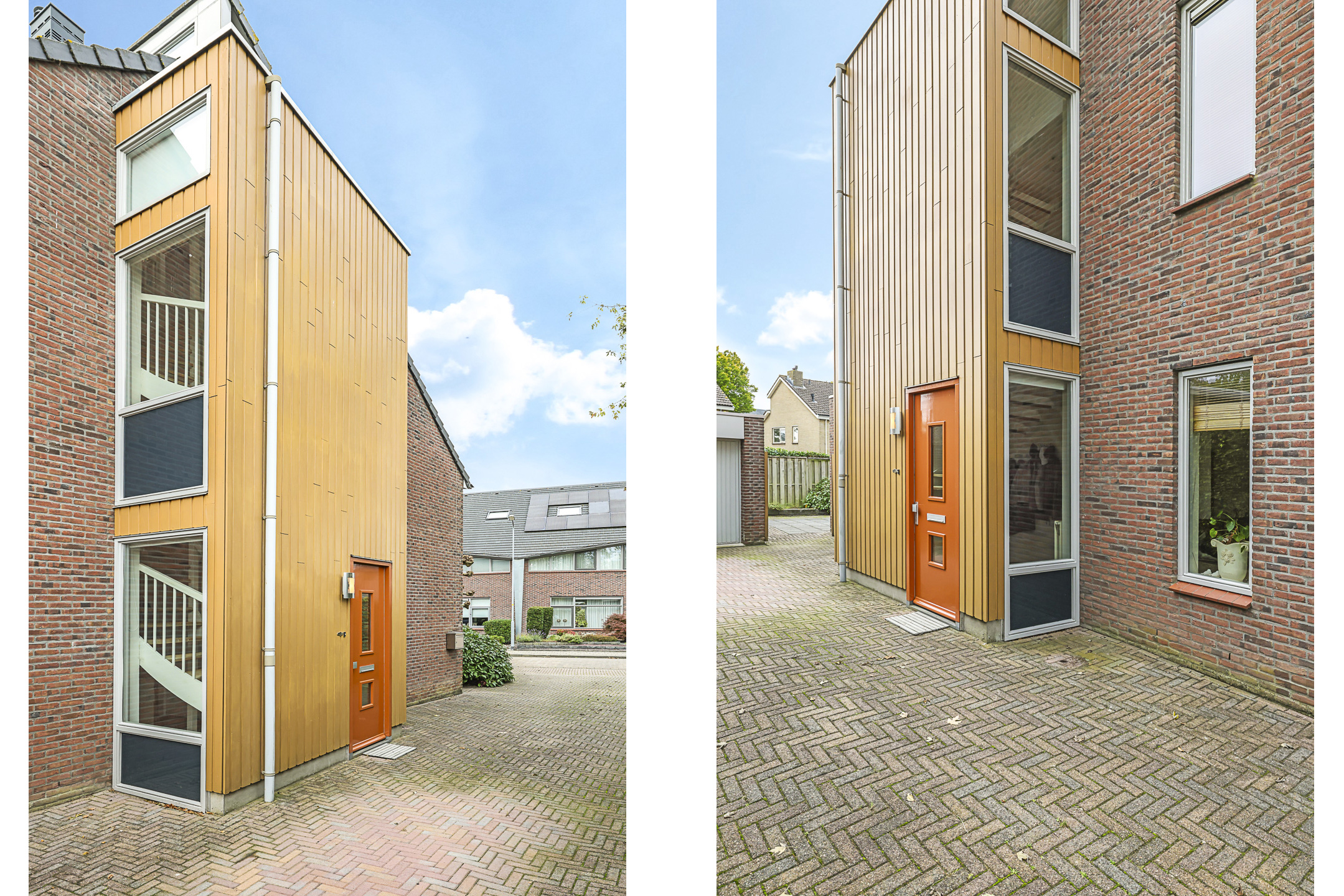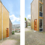 Andere speelse elementen zijn de schuin weglopende voorgevel en het hoge lessenaarsdak op de 2e verdieping. Deze bijzondere kapconstructie heeft 2 verschillende dakvlakken waarbij hoge ramen tot in de nok voor een verspringing én veel daglicht zorgen. Kortom, zoek je geen standaard woonhuis, kom dan eens hier kijken en laat je verrassen.