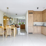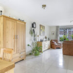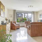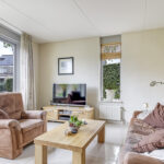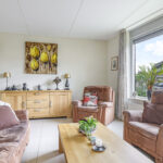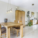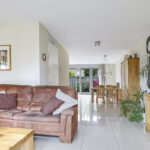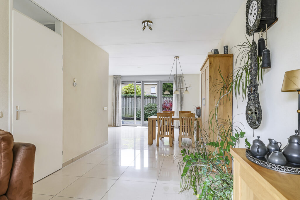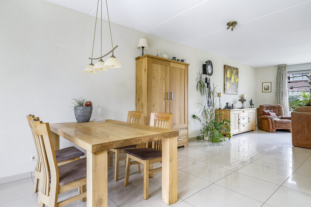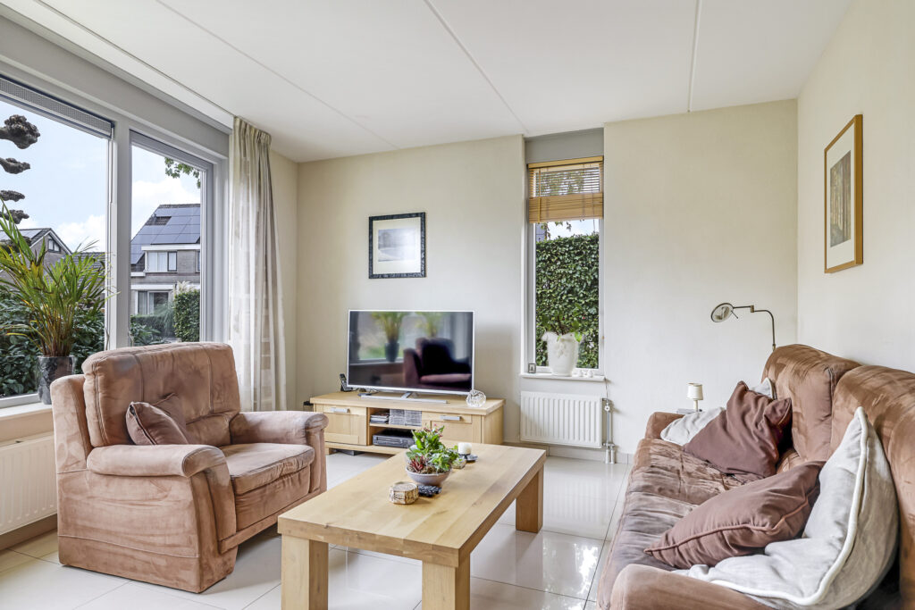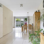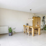 De woonkamer heeft iets gezelligs in zich. Wellicht komt dit door het speelse karakter van de voorgevel en de prettige lichtinval van onder meer het zijgevelraam. Daarbij heeft de woonkamer een aangenaam klimaat doordat de plavuizen vloer is voorzien van vloerverwarming. De zithoek is 4,2 meter diep en 5,1 meter breed waardoor je er prima een grote hoekbank kwijt kunt. Een lange muur nodigt je uit om een TV aan de wand te hangen.
