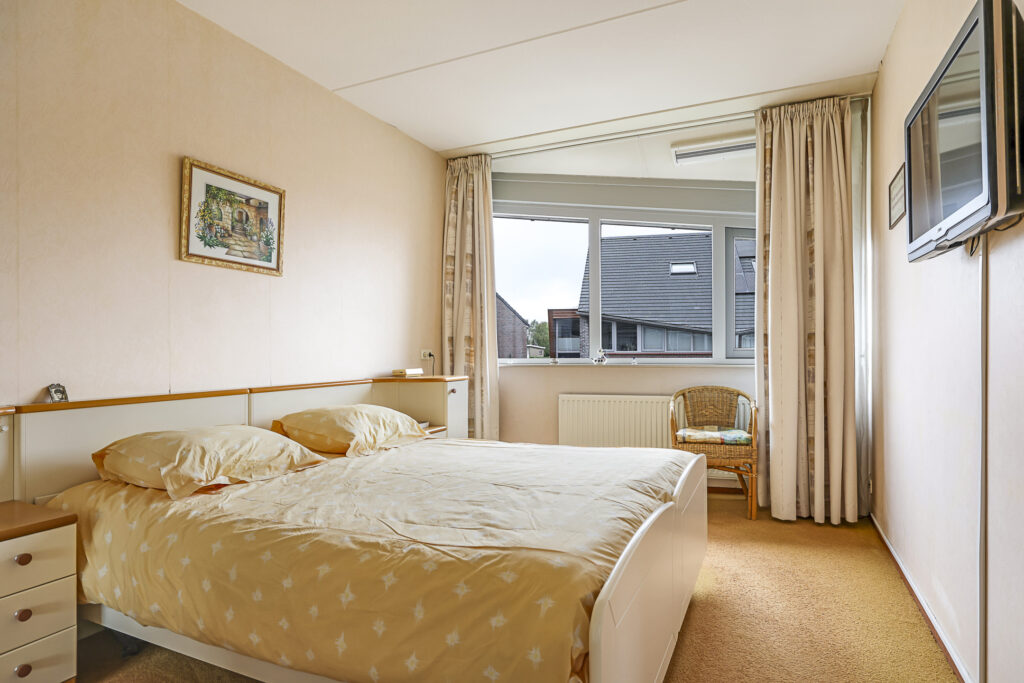 Een ruime overloop met veel daglicht geeft toegang tot de slaapkamers en de badkamer. Op deze verdieping zijn 3 slaapkamers aanwezig. De kamers zijn respectievelijk 15m², 10m² en 8m² groot. De slaapkamers aan de voorzijde hebben speelse raampartijen wat de kamers een niet alledaagse uitstraling geeft. Een drempelloos gelegde laminaatvloer zorgt ervoor dat de kamers één geheel vormen.
