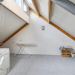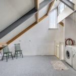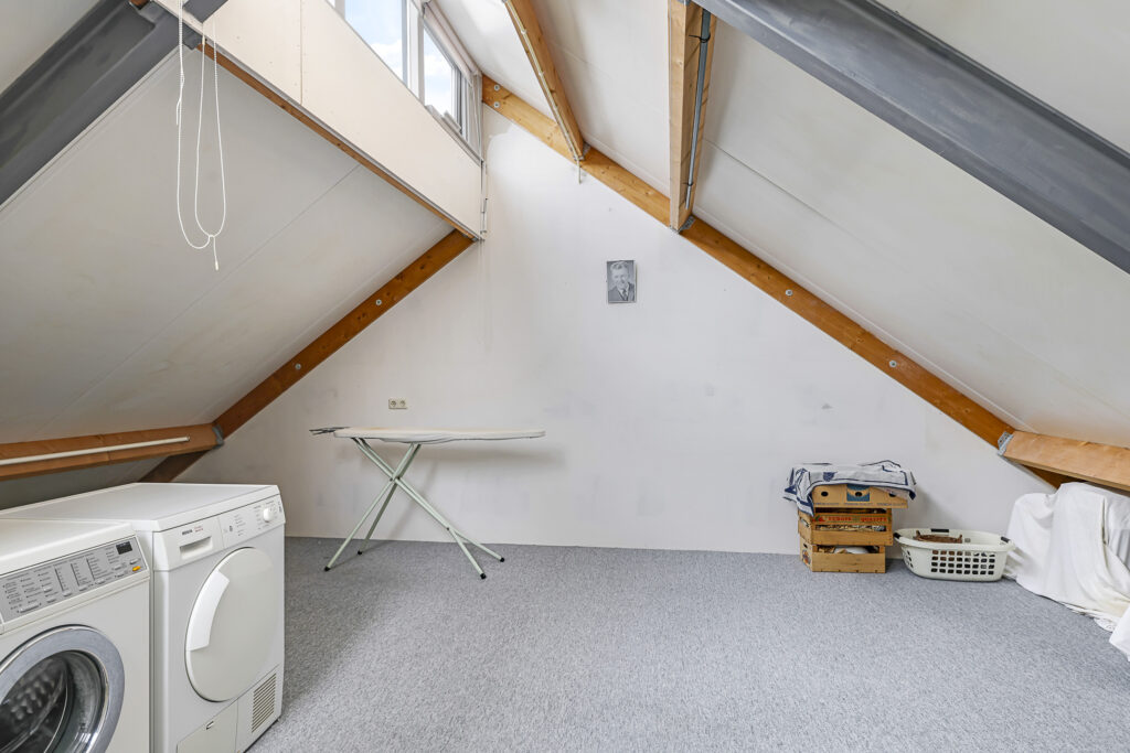 De bovenste woonlaag mag met recht verrassend genoemd worden. Je treft hier een hoge nok welke vanwege de lessenaarskap met hoge ramen in de (3,4 meter hoge) zorgt voor een bijzondere woonsfeer. Het betreft hier een open, multifunctionele ruimte welke de potentie heeft voor nog een 4e slaapkamer en zelfs nog een extra werkhoek. Op deze woonlaag is tevens ruimte voor de wasmachine, wasdroger en de CV-ketelopstelling.