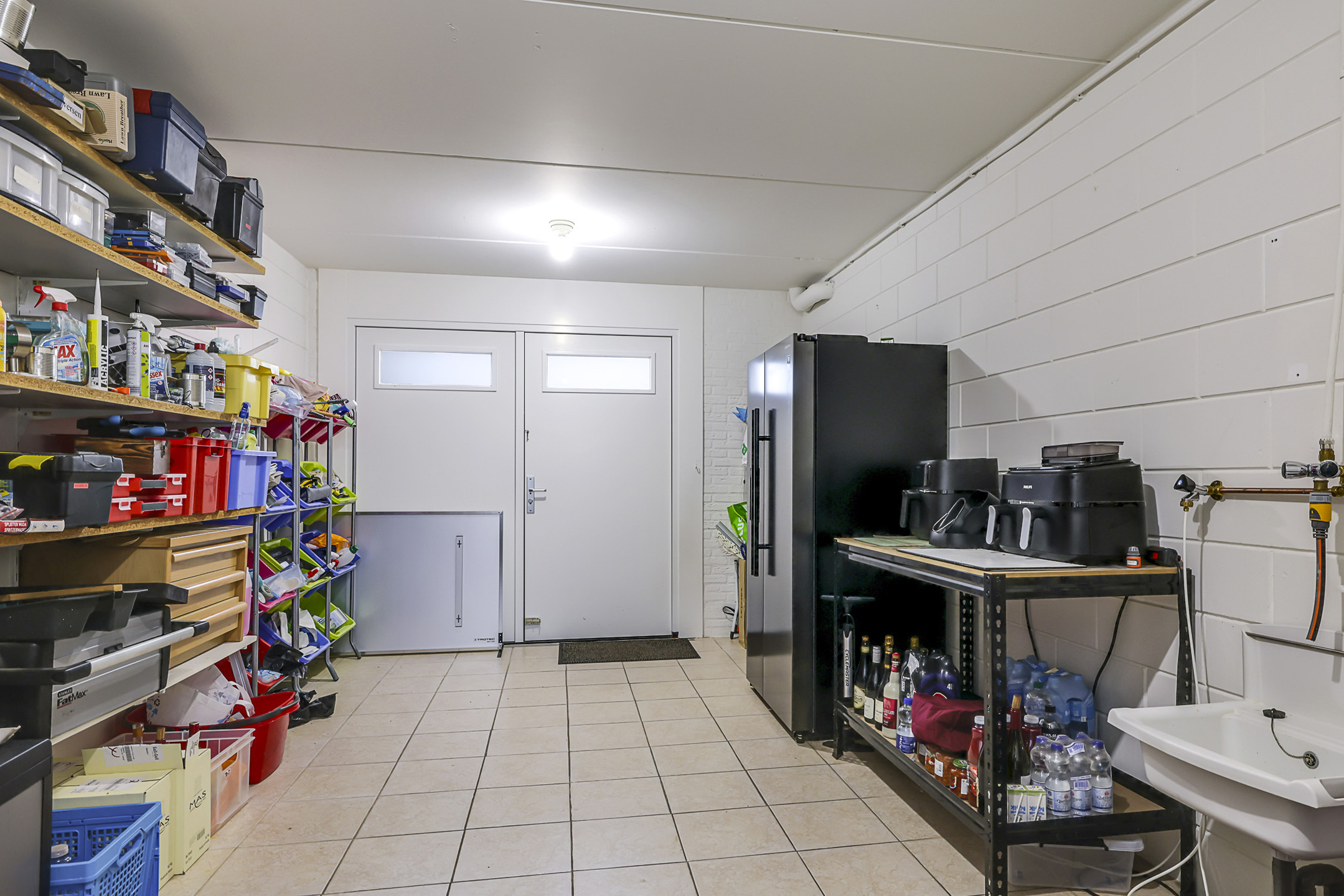 Inpandige garage met dubbele deuren en gootsteen