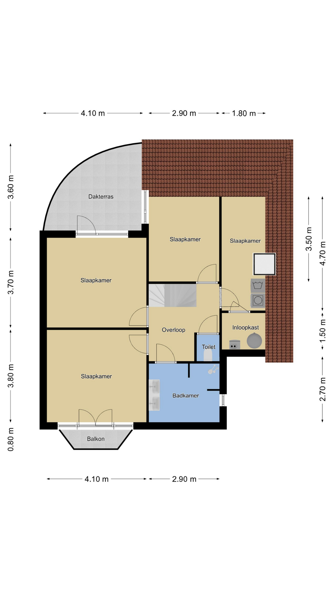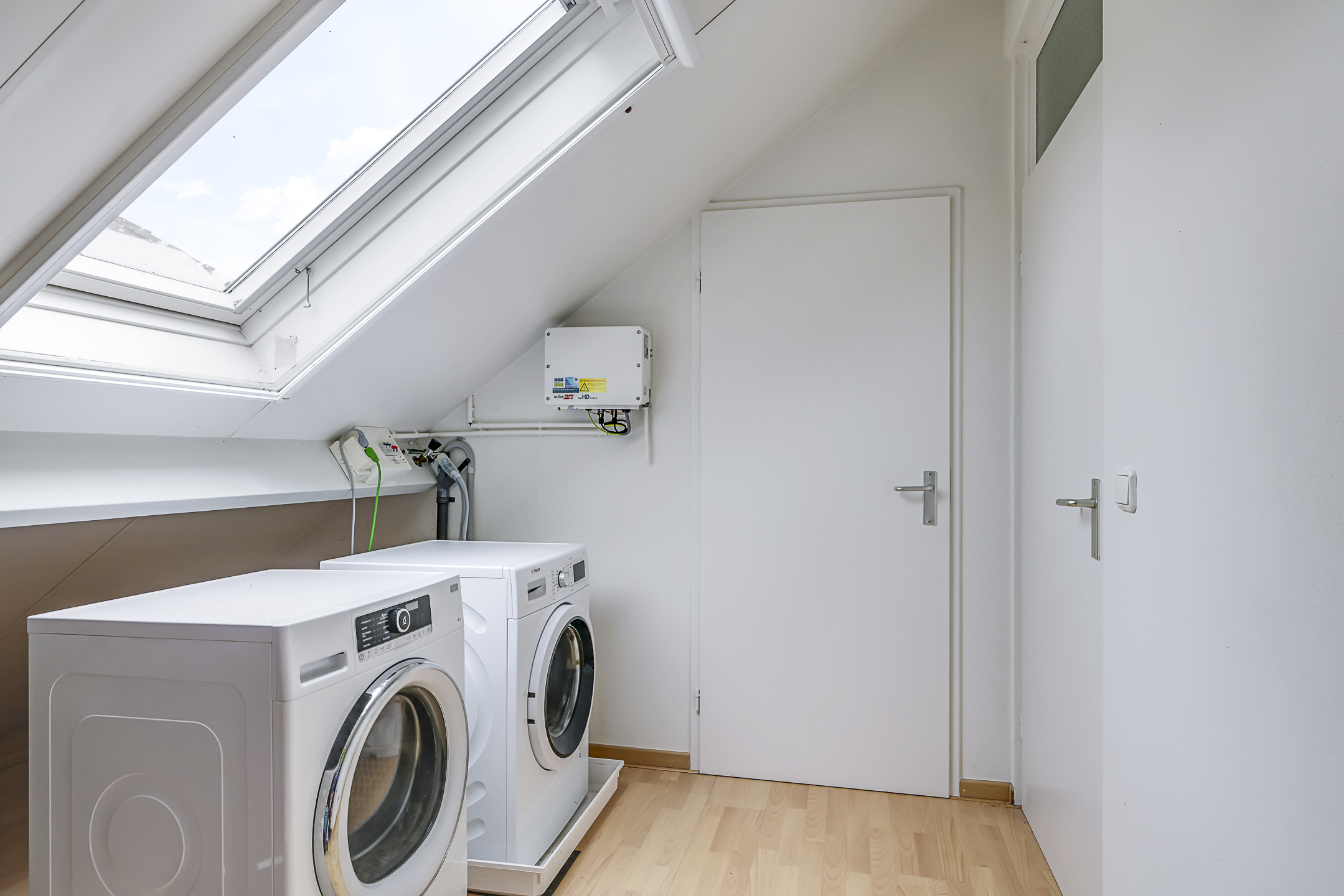 Slaapkamer 4 met dakvenster, wasmachine-aansluiting en doorloop naar…