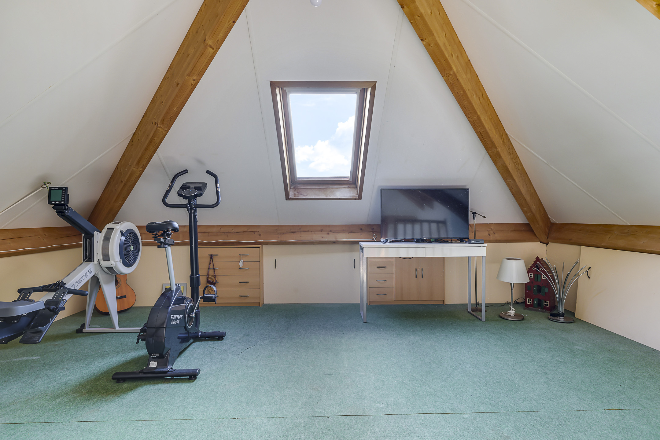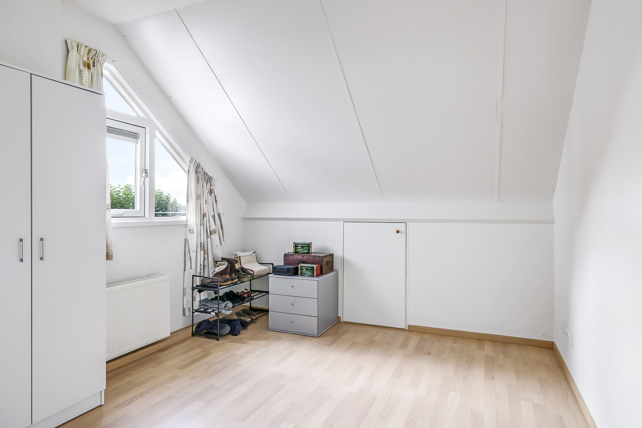 Open, multifunctionele ruimte met dakvenster en rondom knieschot opbergruimte