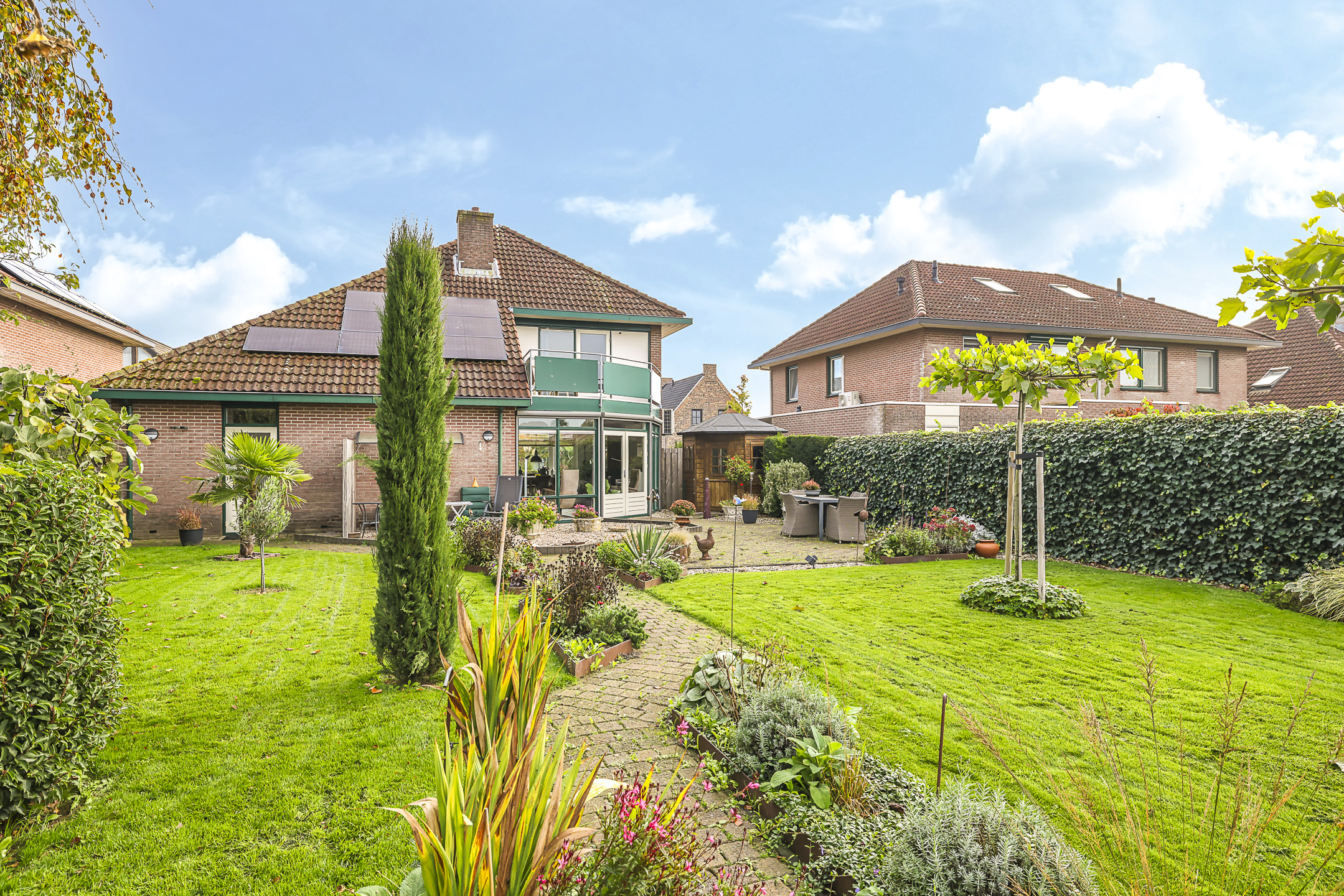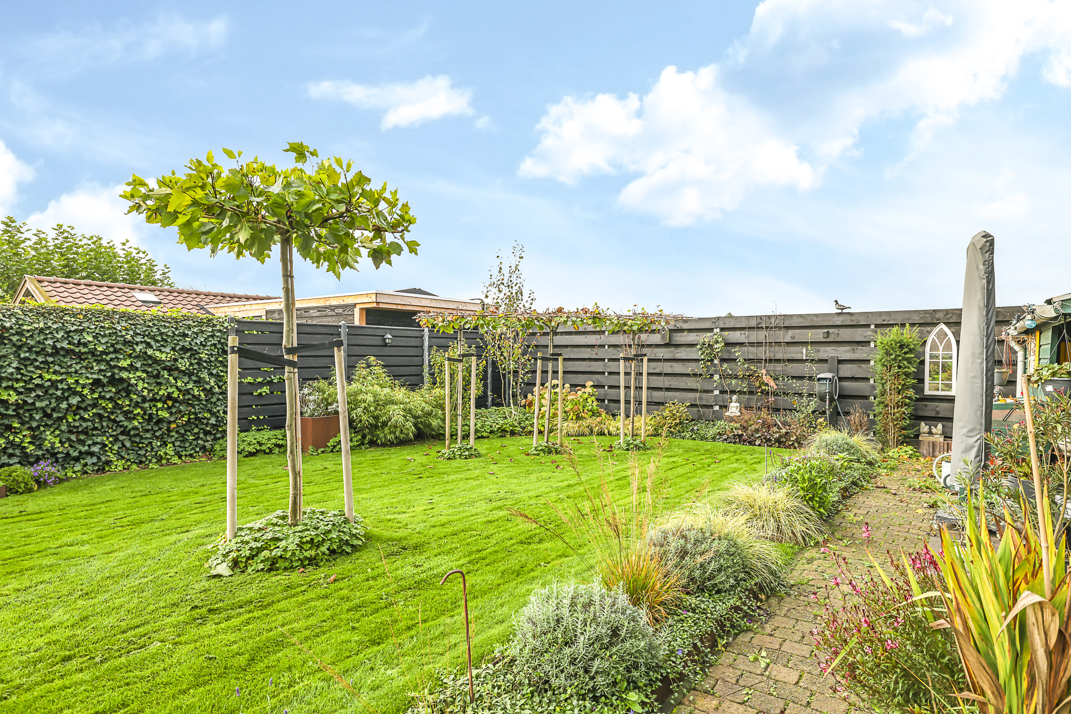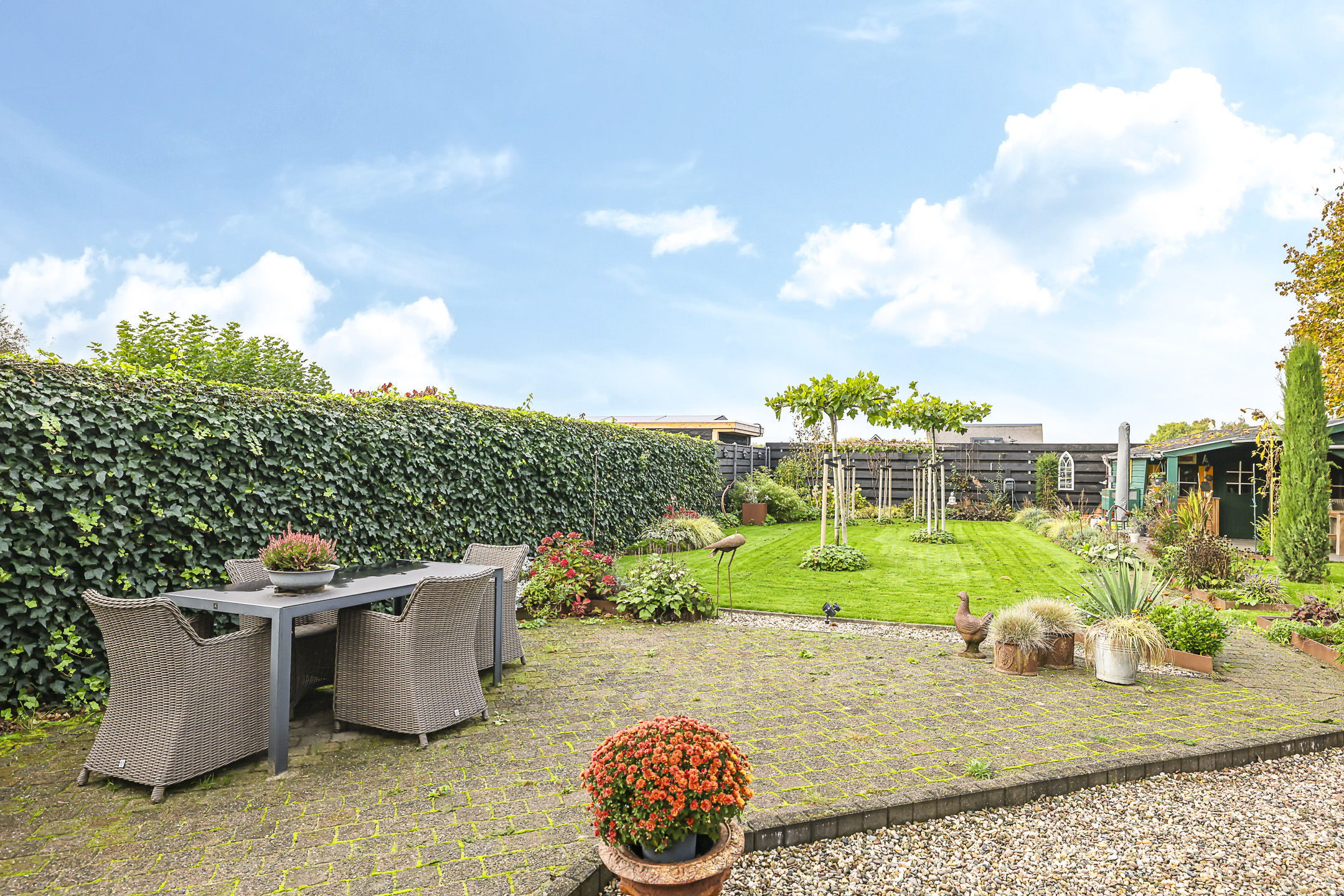 Royale achtertuin met veel zonuren, privacy en vrijheid