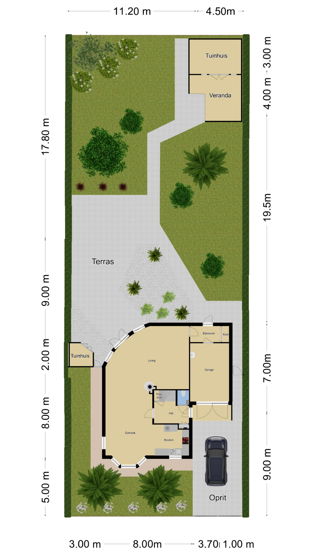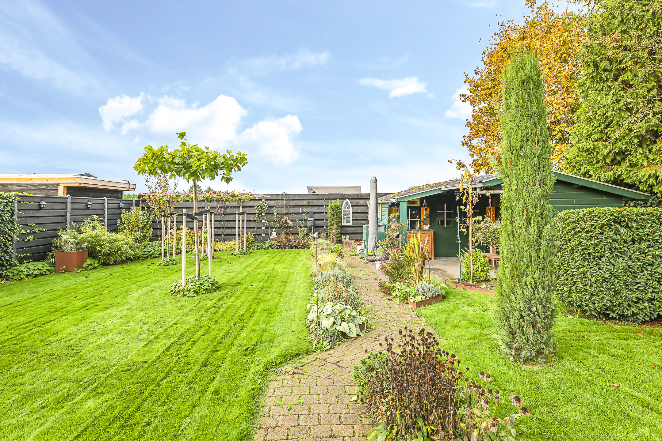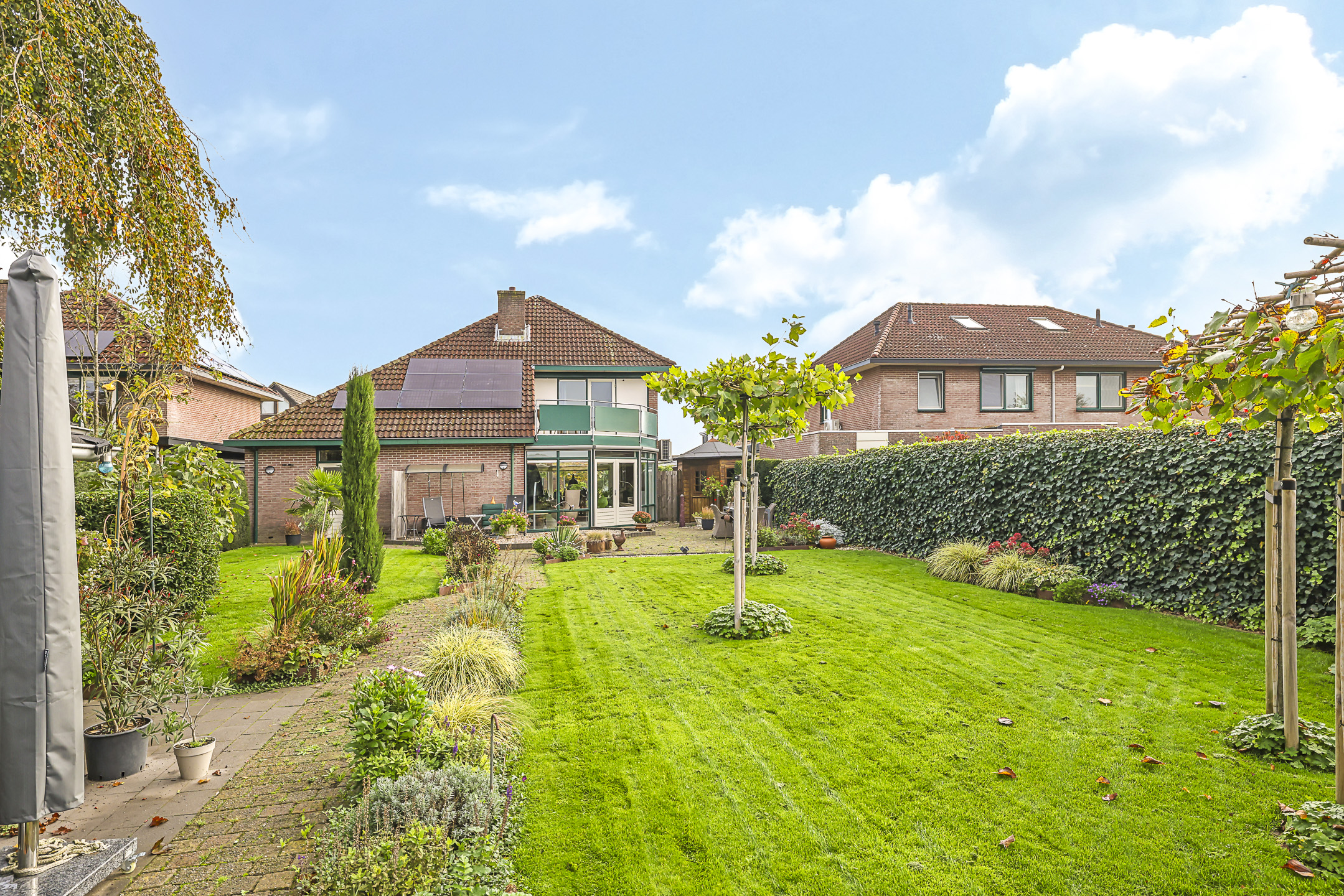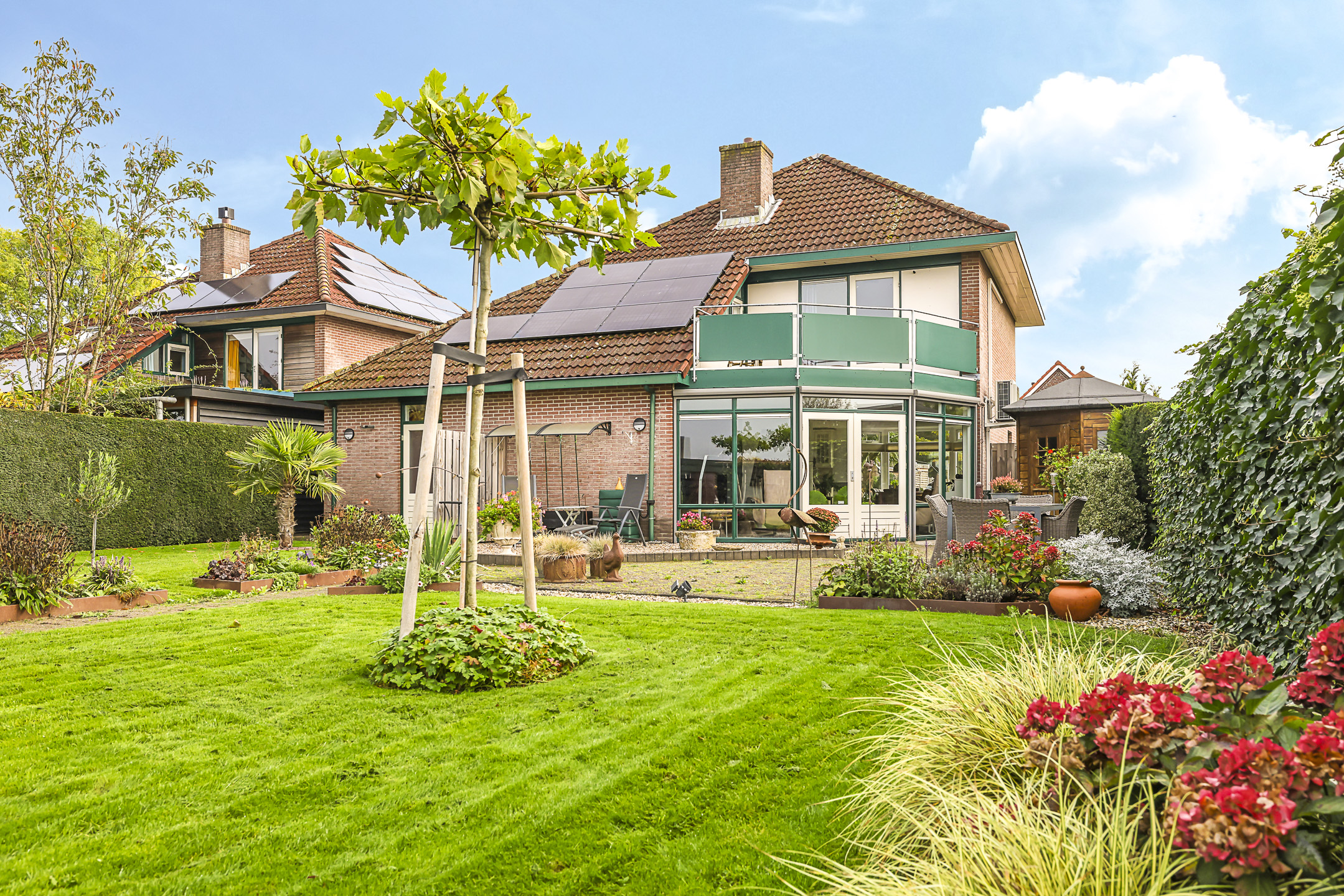 Royale achtertuin met veel zonuren, privacy en vrijheid