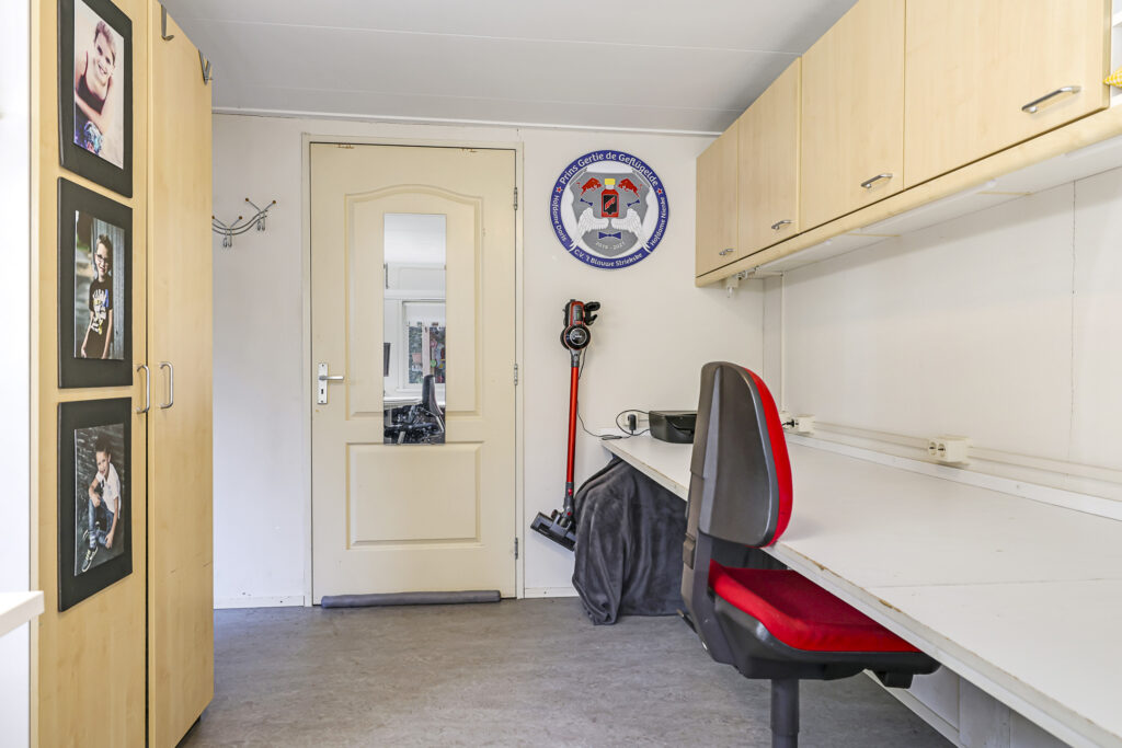Werk je veel vanuit huis dan zal je de aangebouwde werkkamer zeker kunnen waarderen. Deze kamer is ca. 14m2 groot waardoor je er met gemak een groot bureau en een archiefkast kwijt kunt. Maar je zou ook aan andere mogelijkheden kunnen denken zoals een praktijk of salon aan huis. En mocht je nog verder ‘out-of-the-box’ denken, dan zou je hier ook prima een slaapkamer en badkamer op de begane grond kunnen creëren. De aanbouw is voorzien van een kruipruimte waardoor je eenvoudig aansluitingen voor een (2e) badkamer kunt realiseren. Op deze manier zou je de woning levensloopbestendig kunnen bewonen.