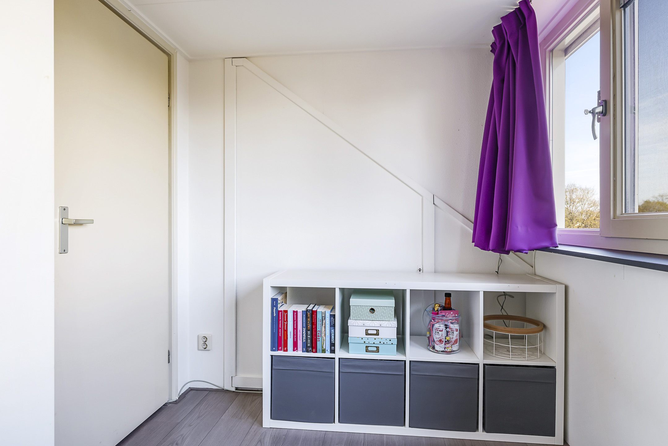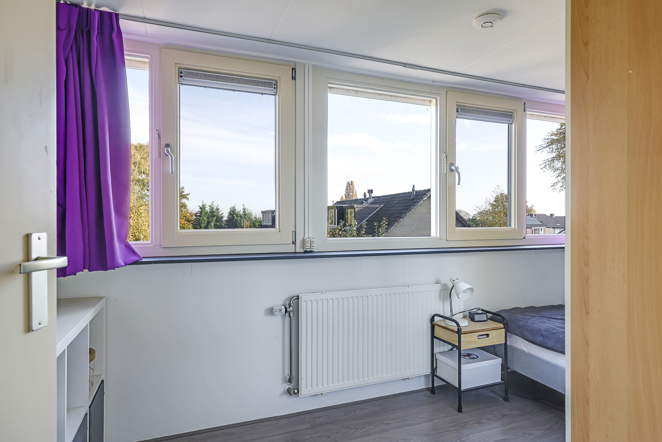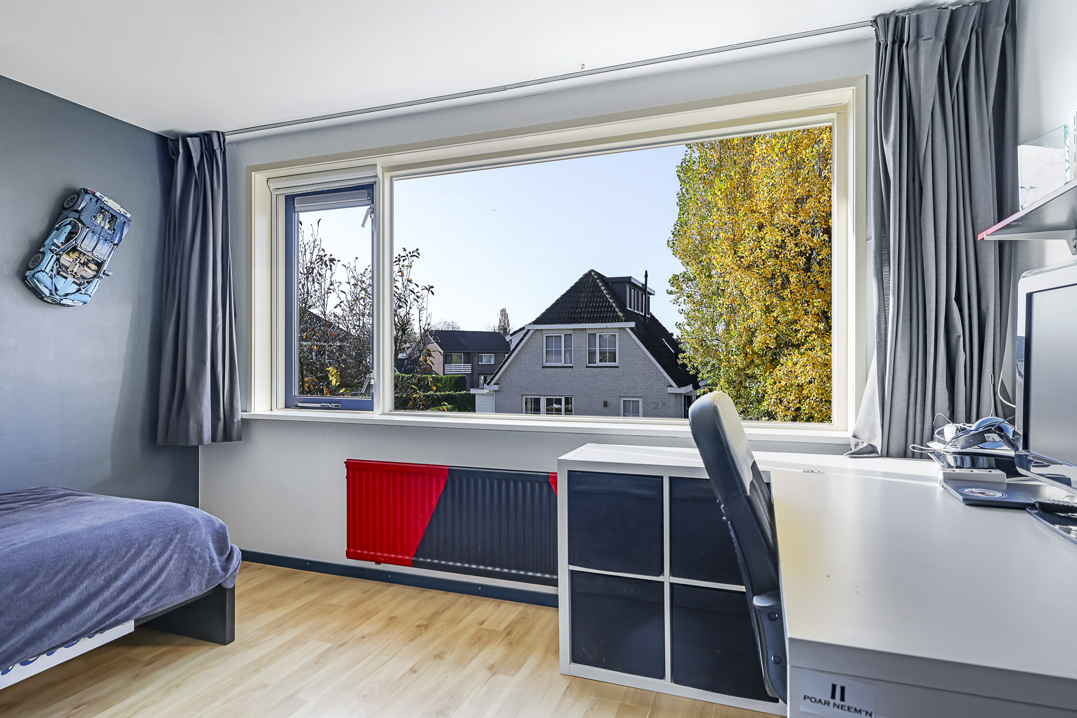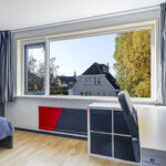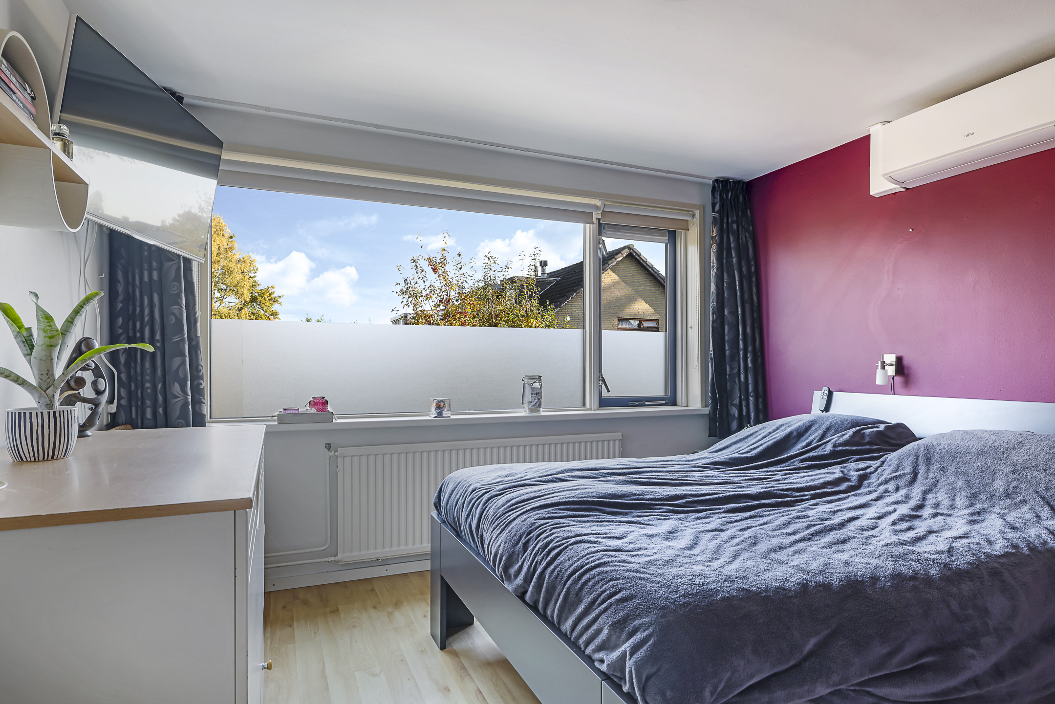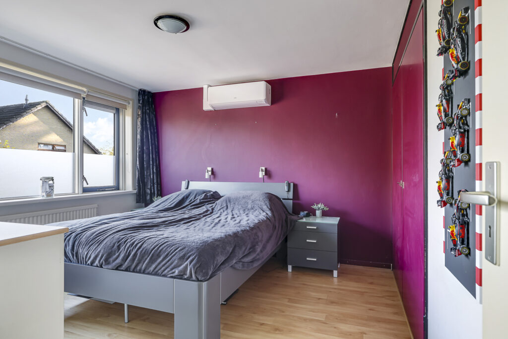 De 4e slaapkamer is in ieder geval een groot pluspunt. Doordat er een maximaal brede dakkapel (4,2 meter breed) is geplaatst, is er flink meer ruimte gecreëerd. De dakkapel biedt een vrij uitzicht over de wijk, is voorzien van draairamen en inbouwspots en is voor de zon af te sluiten met een elektrisch bedienbare screen. En natuurlijk ontbreekt ook op deze slaapkamer de airconditioning niet.