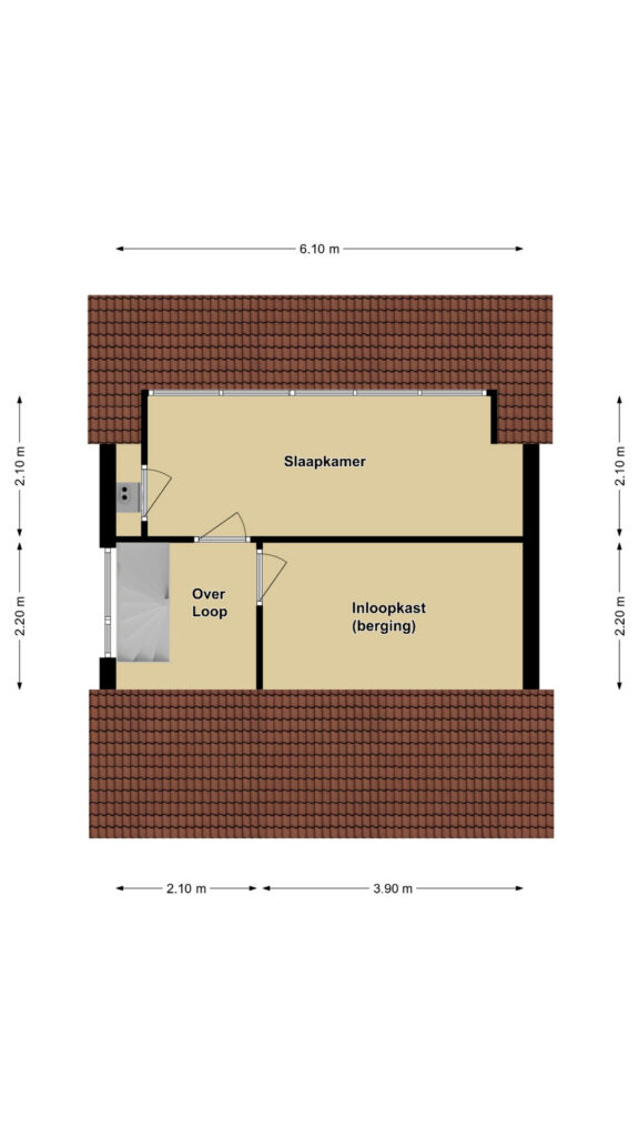 Waar veel woningen uit deze bouwperiode een houten 2e verdiepingsvloer hebben, heeft deze woning ‘gewoon’ een betonvloer. Dit is minder gehorig en voelt meer solide aan. Van origine was het één open ruimte maar ondertussen is deze woonlaag ingedeeld met een voorzolder, een 4e slaapkamer en een inloopkamer die thans in gebruik is als bergzolder. En met een nokhoogte van 3 meter kun je hier heel veel spullen kwijt. En wanneer je er nog een dakvenster plaats, zou je er zelfs een 5e slaapkamer of logeerkamer kunnen creëren.