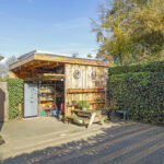 Naast deze schuur is er een poort (achterom) waardoor je eenvoudig met bijvoorbeeld een fiets in de achtertuin kunt komen.