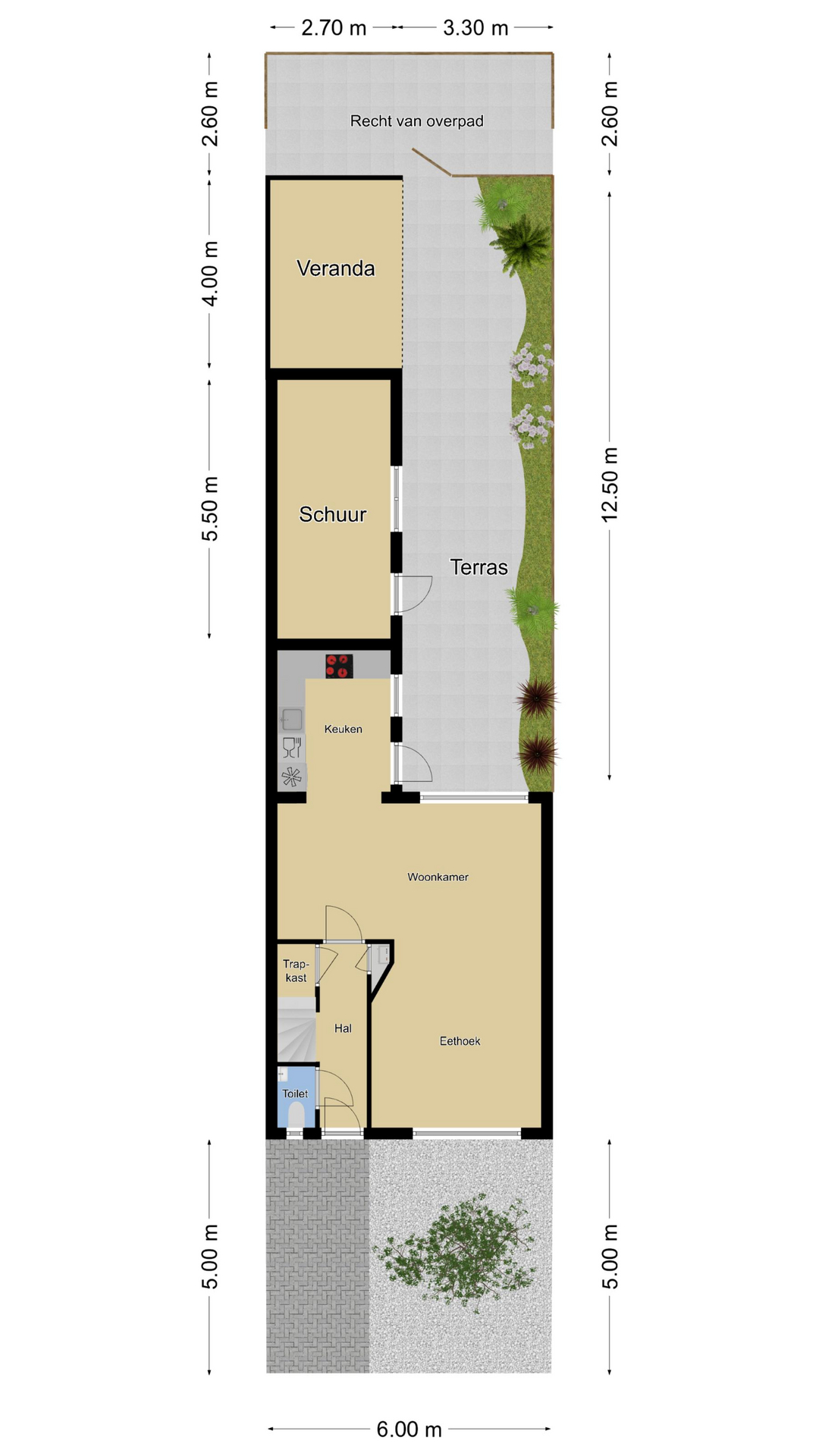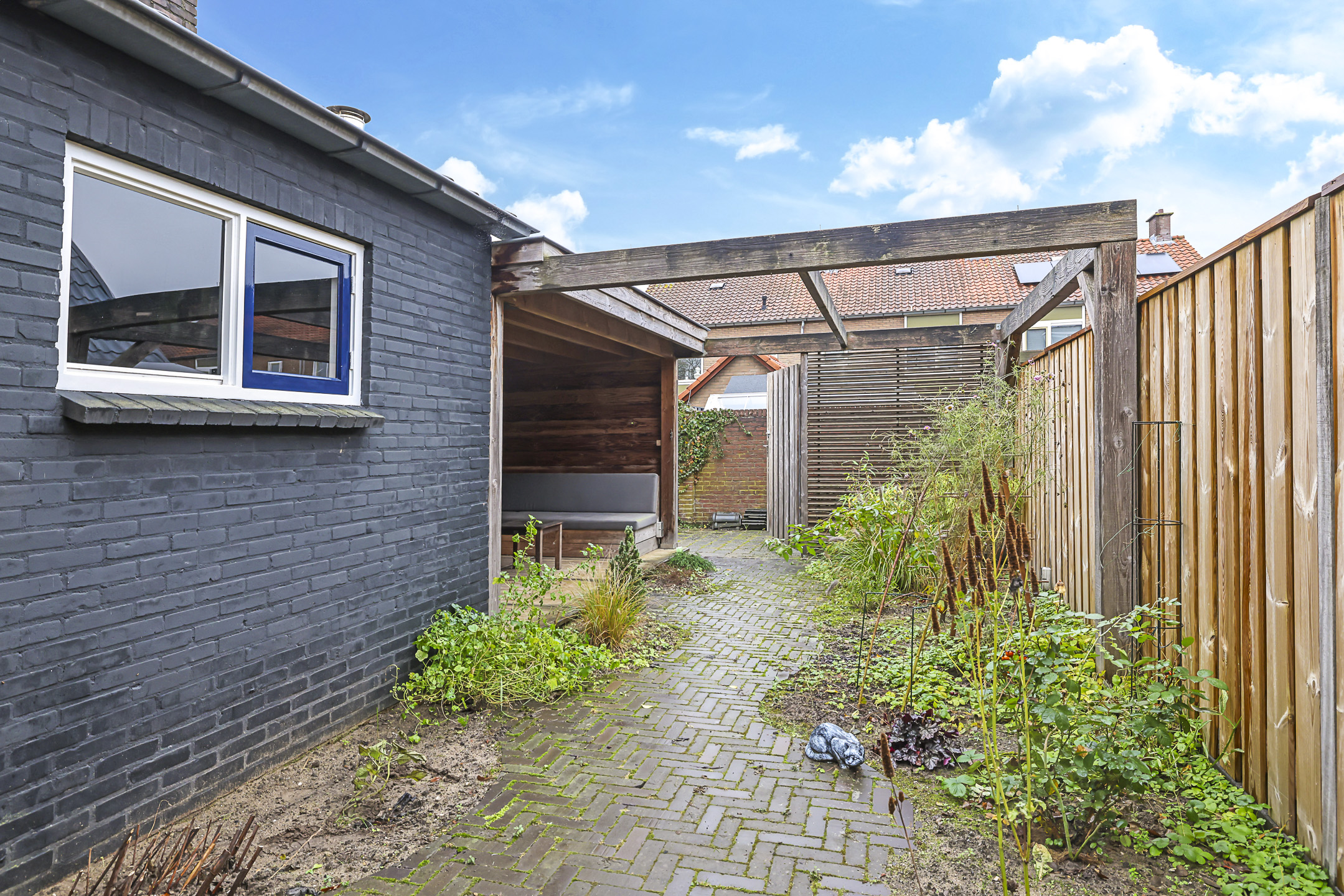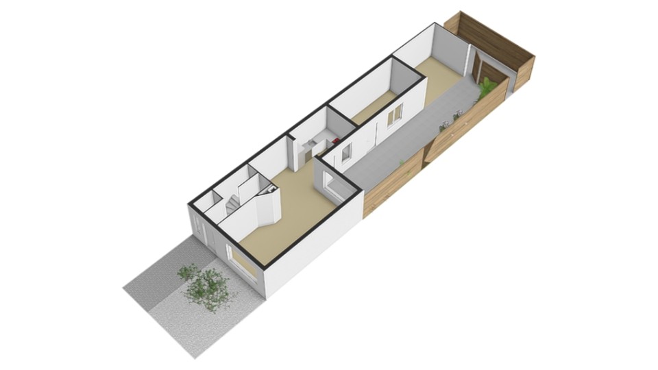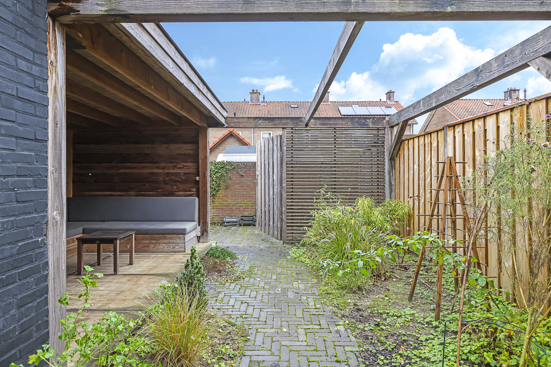 Diepe achtertuin met veranda