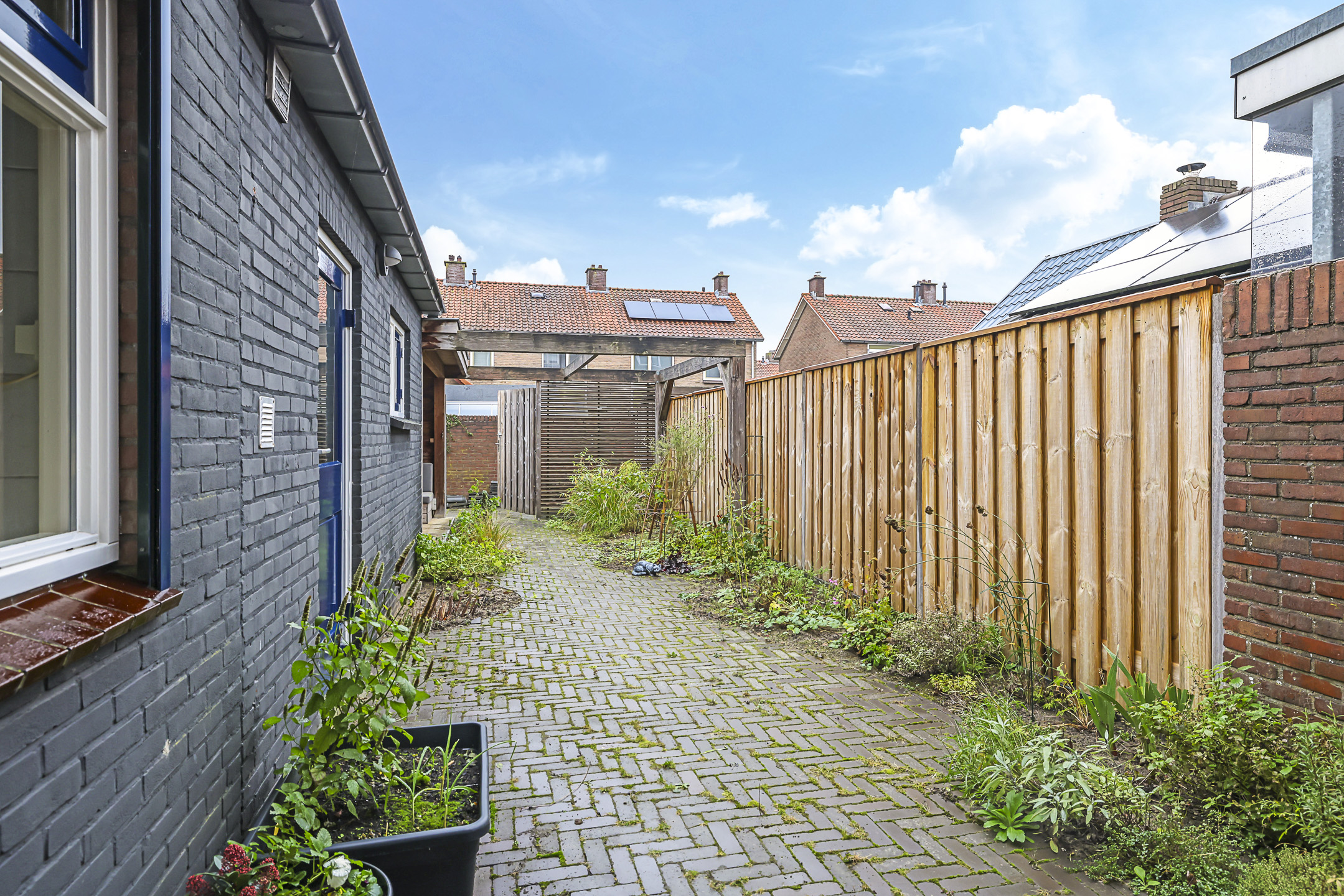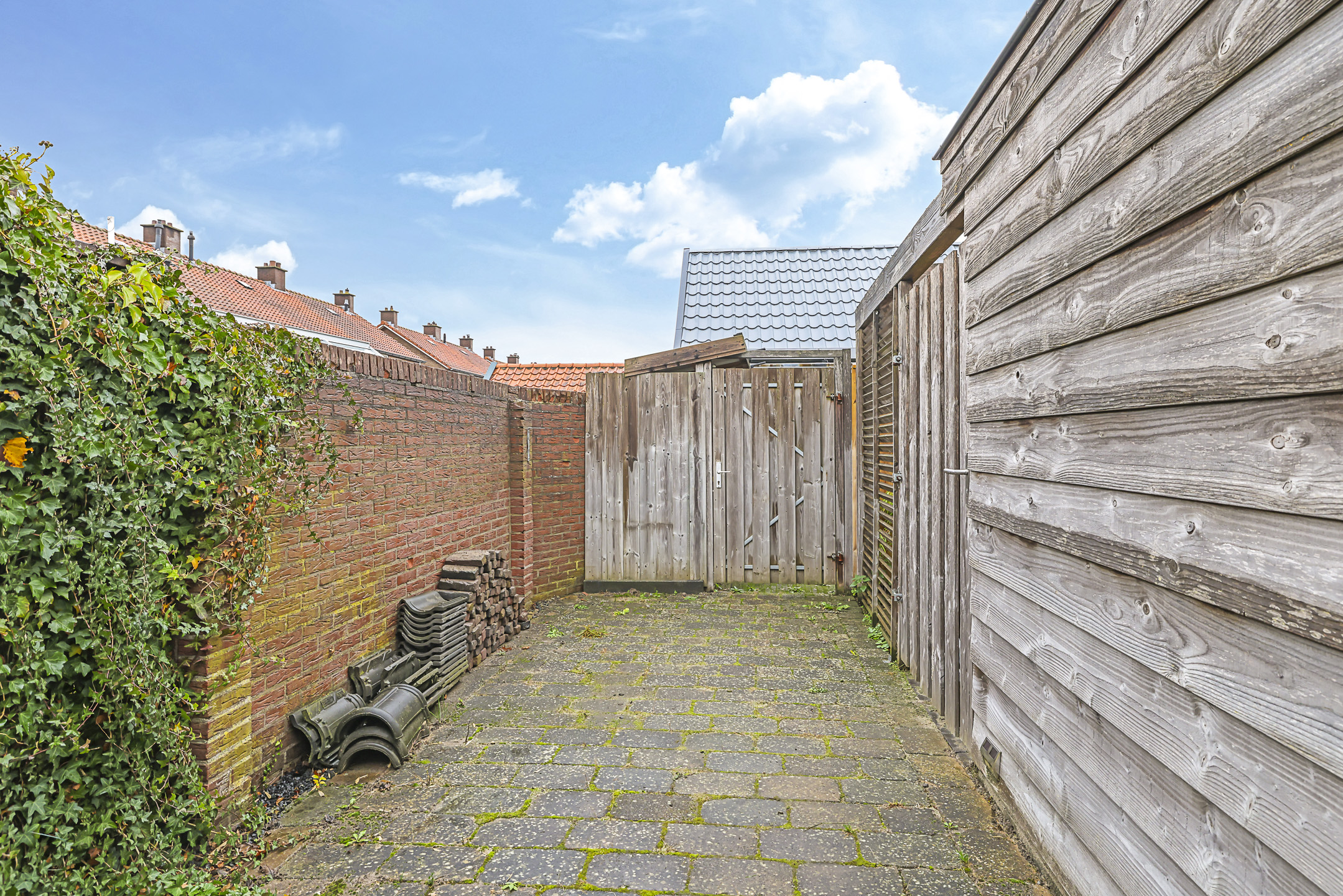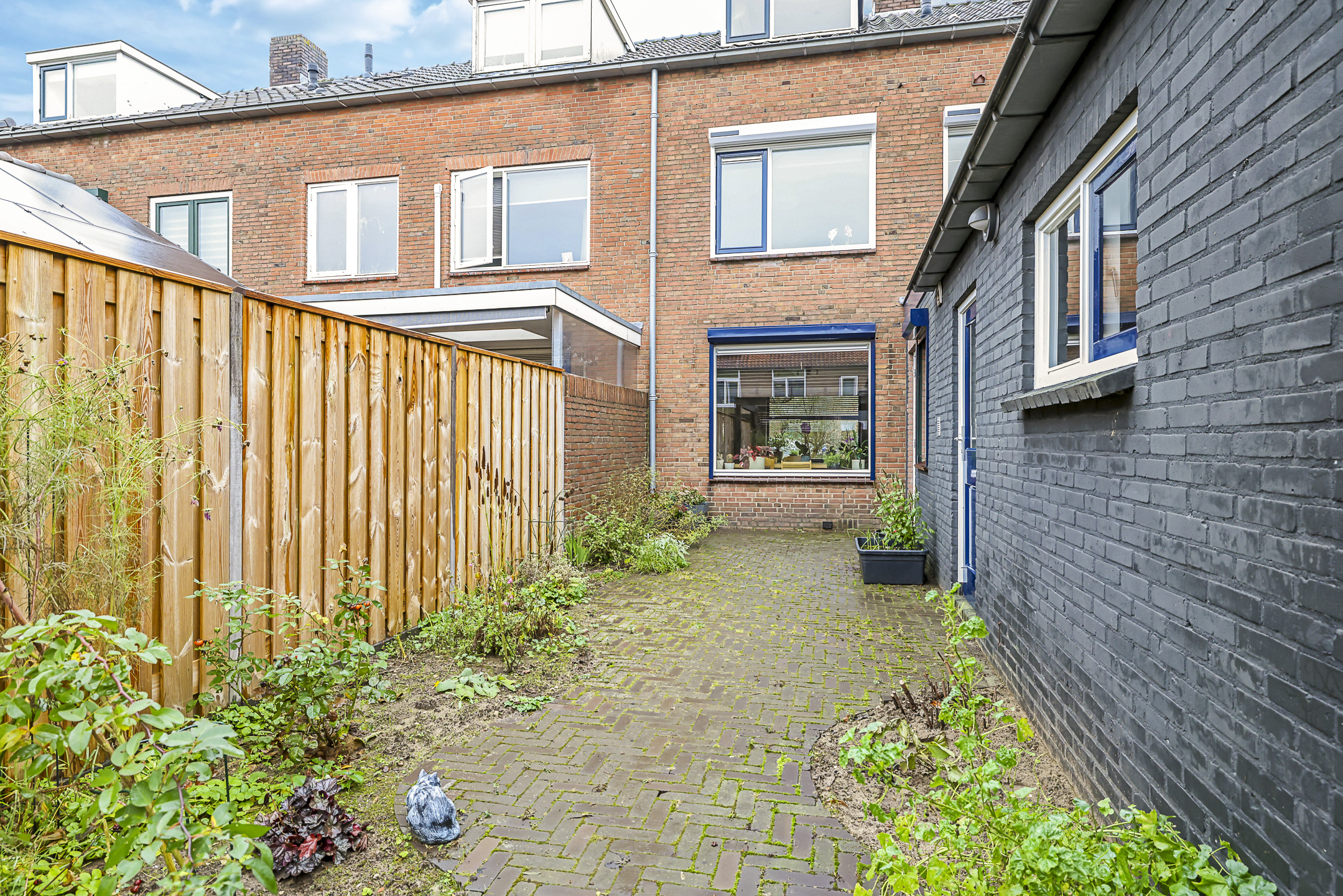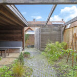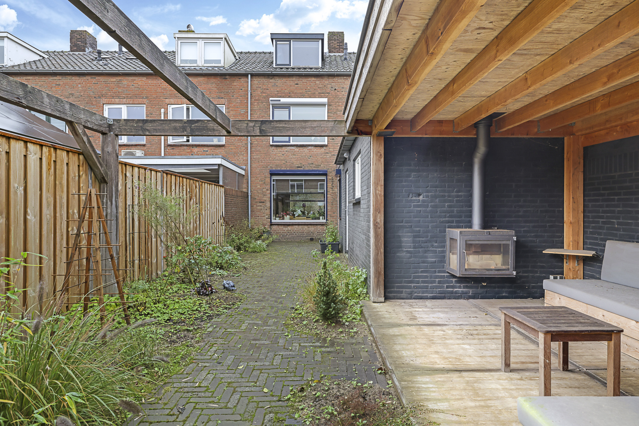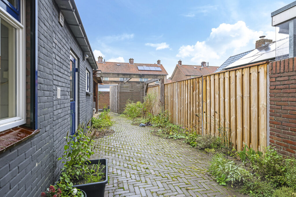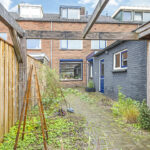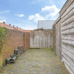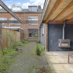 De tuin past geheel in stijl bij de woning, met een diepte van ruim 15m kan iedereen hier een eigen plekje creëren. In het verlengde van de ‘uitbouw’ is een stenen schuur geplaatst. De schuur heeft een oppervlakte van bijna 15m2 en is daarmee een stuk groter dan gemiddeld. Hierdoor heb je veel opbergruimte maar kun je ook goede werkbank kwijt. In de schuur is elektra en zelfs verwarming aanwezig. In het verlengde van de schuur is tevens een houten veranda geplaatst. Ideaal om een bijvoorbeeld een stijlvolle loungeset te plaatsen. Onder de veranda kun je in de warme zomerdag heerlijk de schaduw opzoeken. Wil je in de nazomer langer buiten zitten, onder de veranda is tevens een sfeervolle houtkachel geplaatst. De tuin is verder aangekleed met een groot terras en een speelse border met div. planten en struiken. Achter de schutting is nog een deel van de achtertuin te vinden, hier hebben de bewoners van Flessestraat nr. 30 recht van overpad. De tuin is onderhoudsvriendelijk waardoor je meer tijd over hebt om te genieten van de middag/avondzon door de gunstige ligging op het westen.