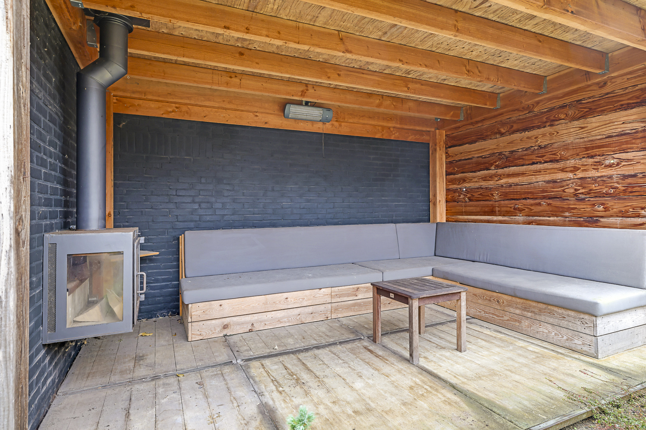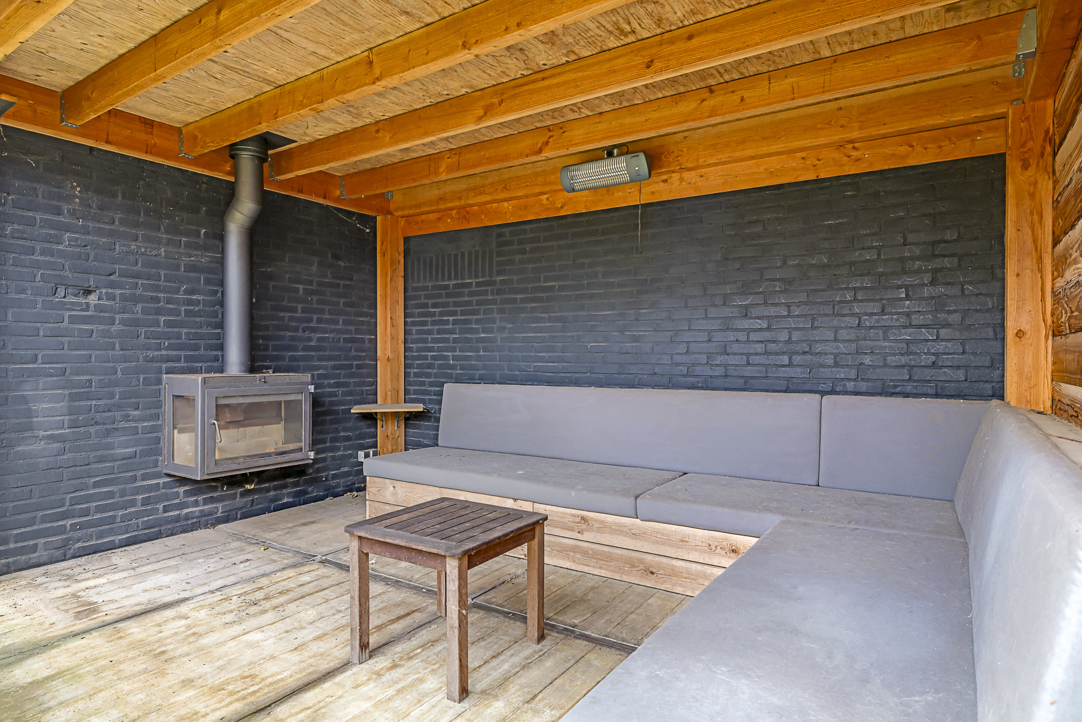 Houtkachel in de veranda
