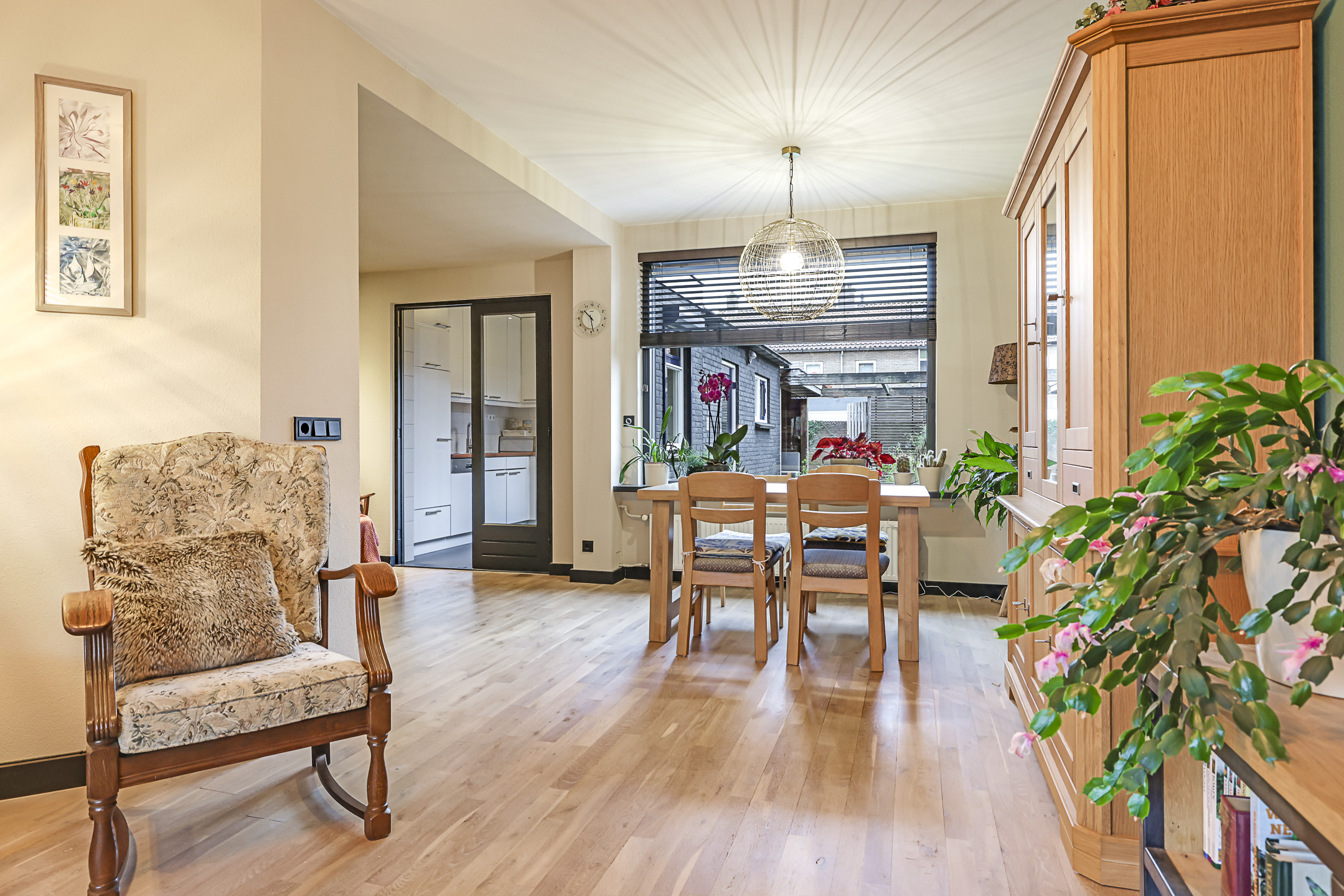 L-woonkamer met stijlvolle houten vloer