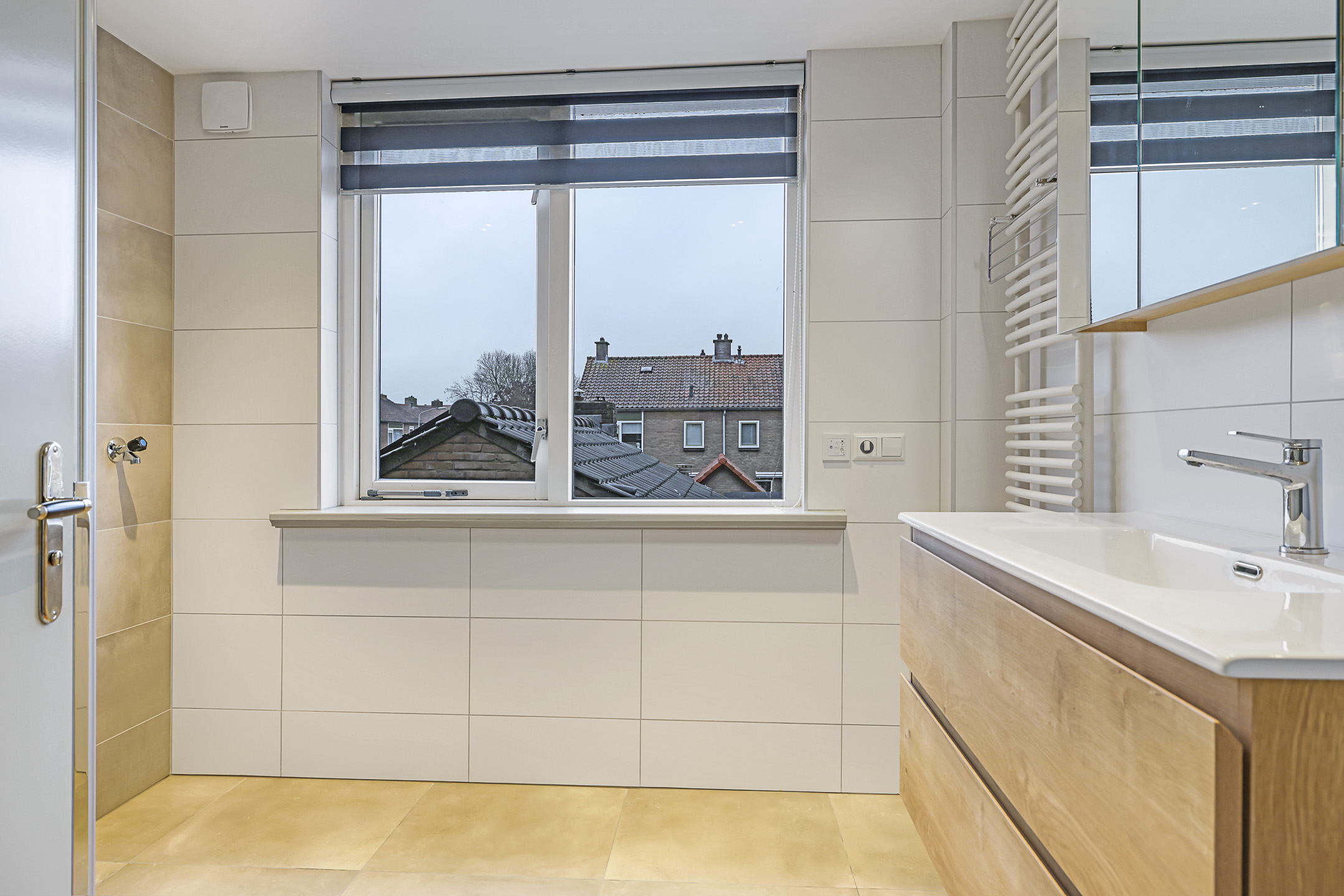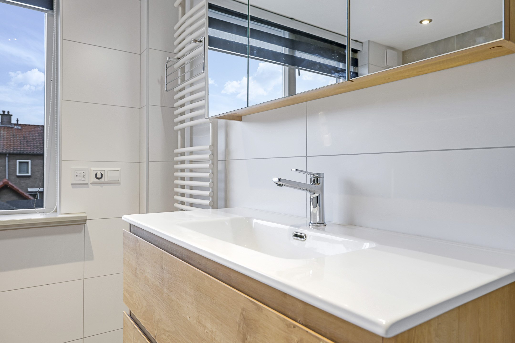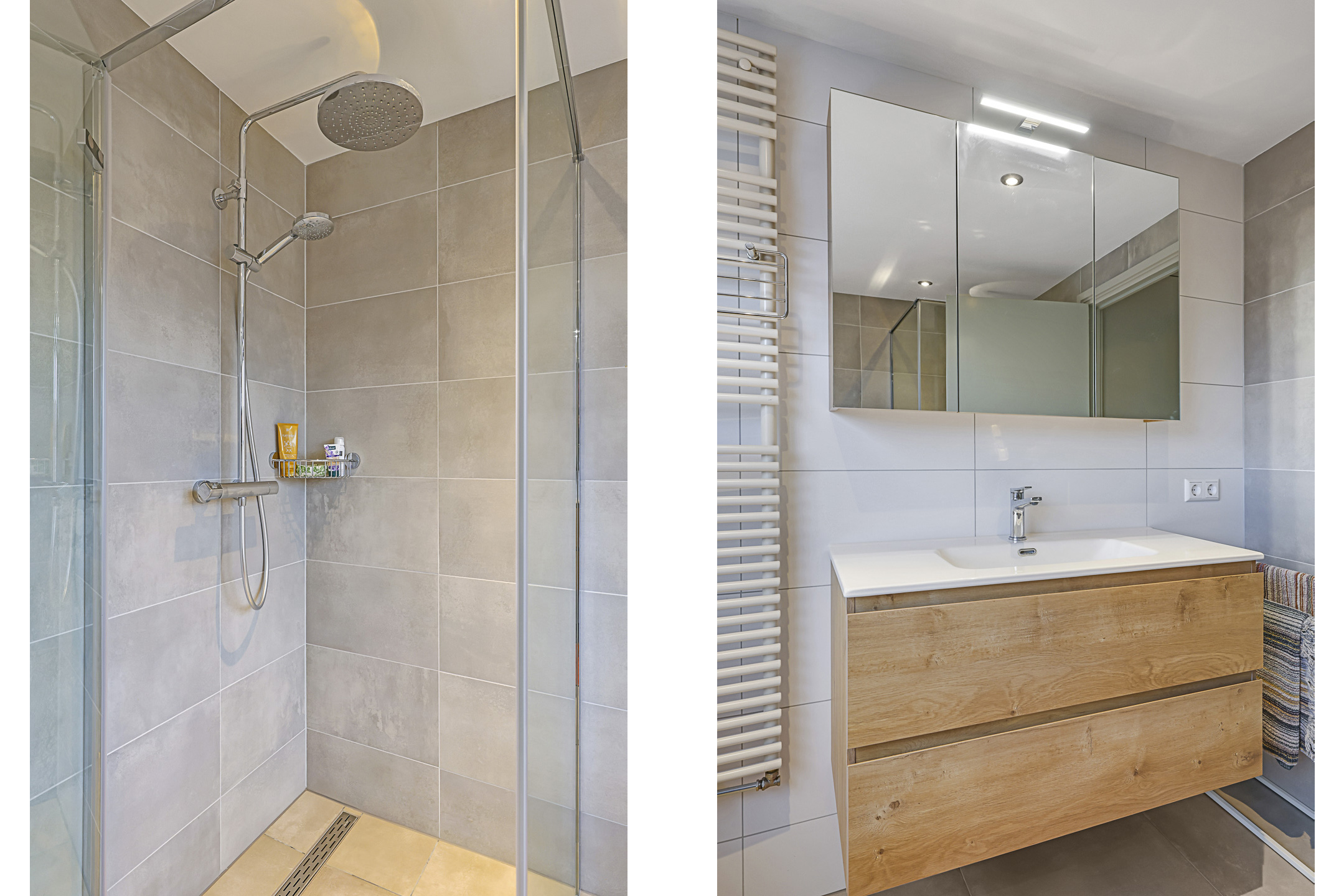 Recent gemoderniseerde badkamer met inloopdouche en wastafelmeubel