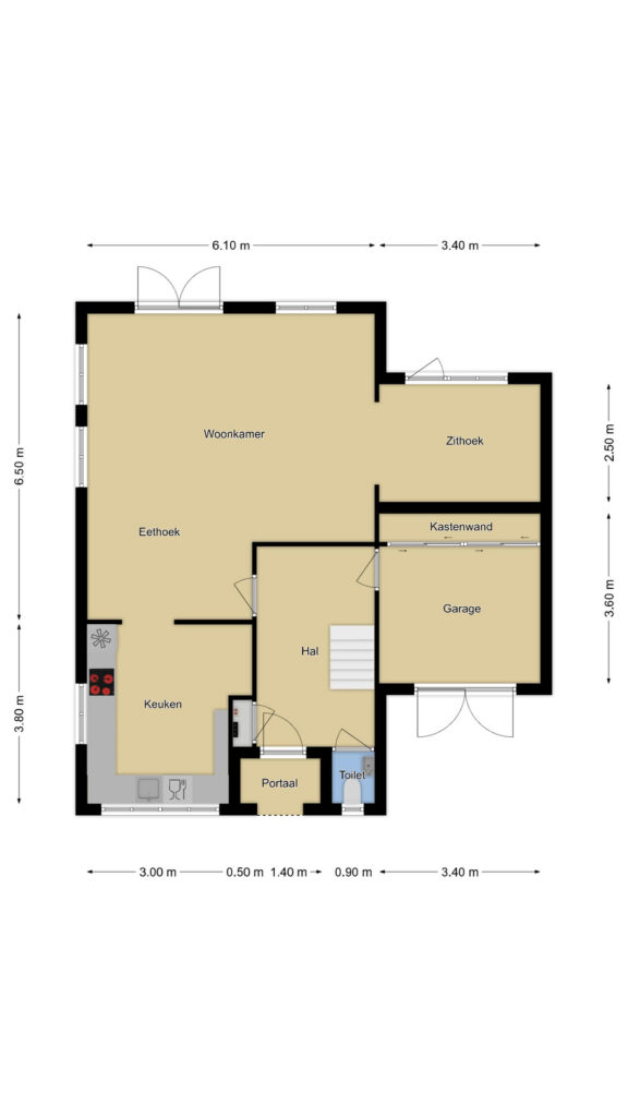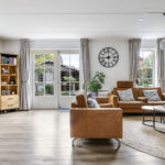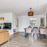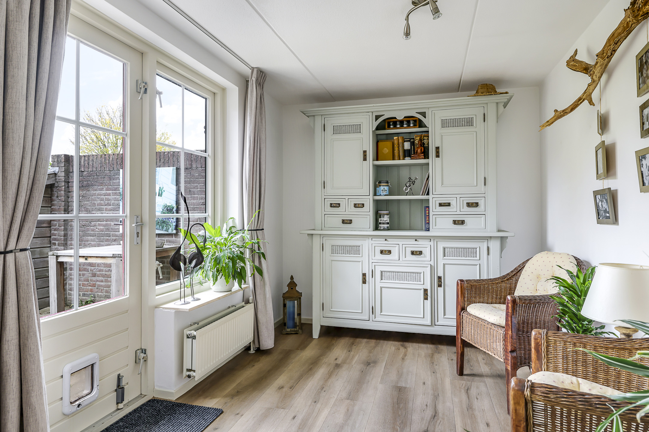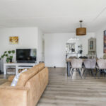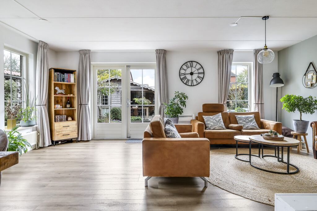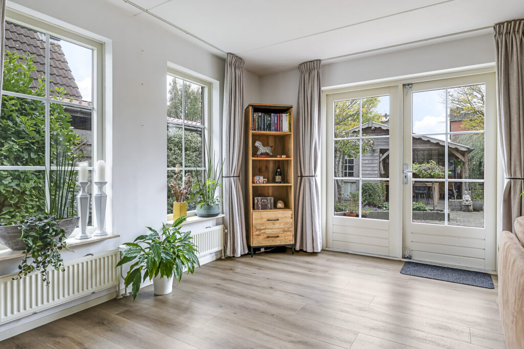 De woonkamer is van zichzelf al breder dan gemiddeld, maar doordat het achterste gedeelte van de garage bij de woonkamer is betrokken, is de woonkamer nóg breder geworden. Hierdoor is er een royale, tuingerichte woonkamer ontstaan met meerdere zithoeken, dubbele openslaande tuindeuren én een extra loopdeur naar het zonneterras. Dankzij de zuidwestelijke ligging valt het daglicht rijkelijk binnen en heb je vrijwel de hele dag zon in huis. En mocht het in de zomer té warm worden, dan maak je het al snel aangenaam door de aanwezige airconditioning aan te zetten…