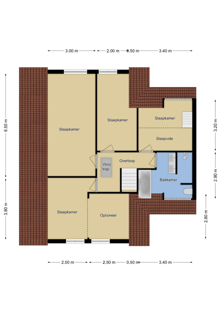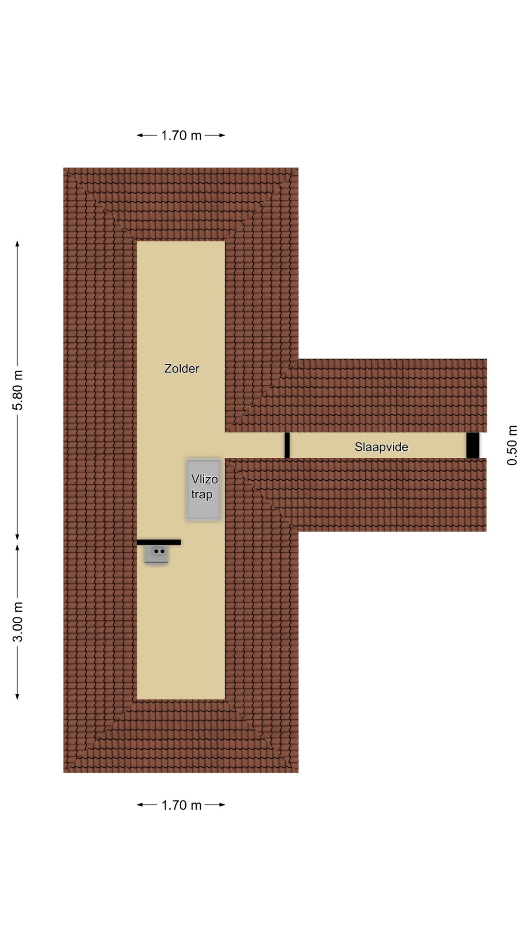 Volledig bevloerde zolder (nokhoogte 2,6 m)