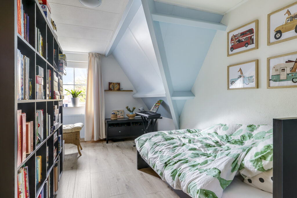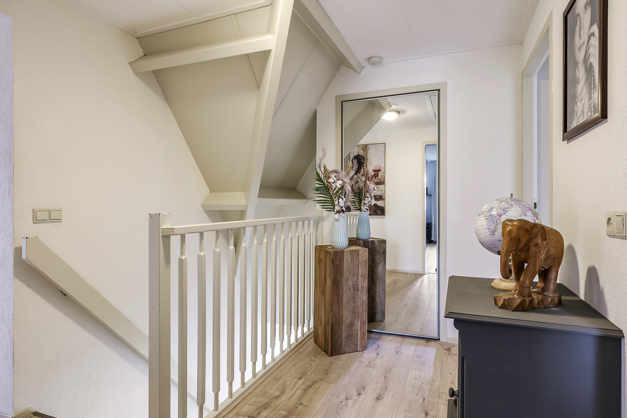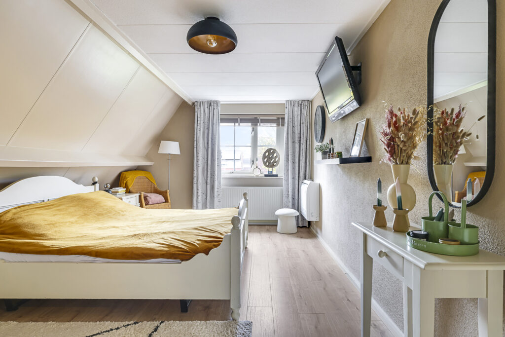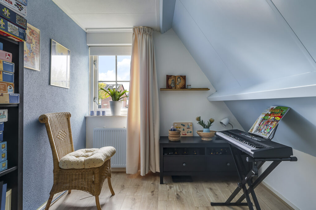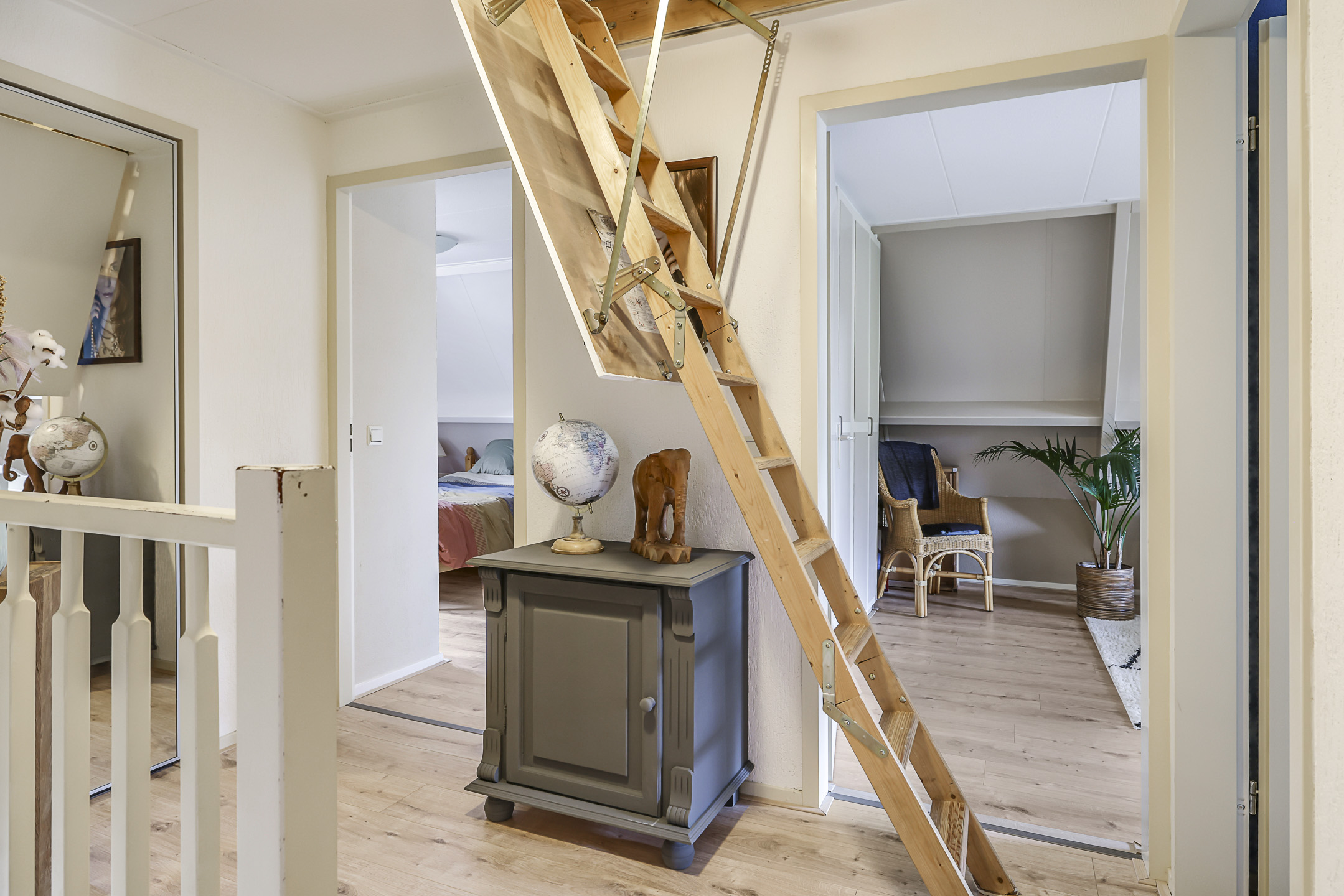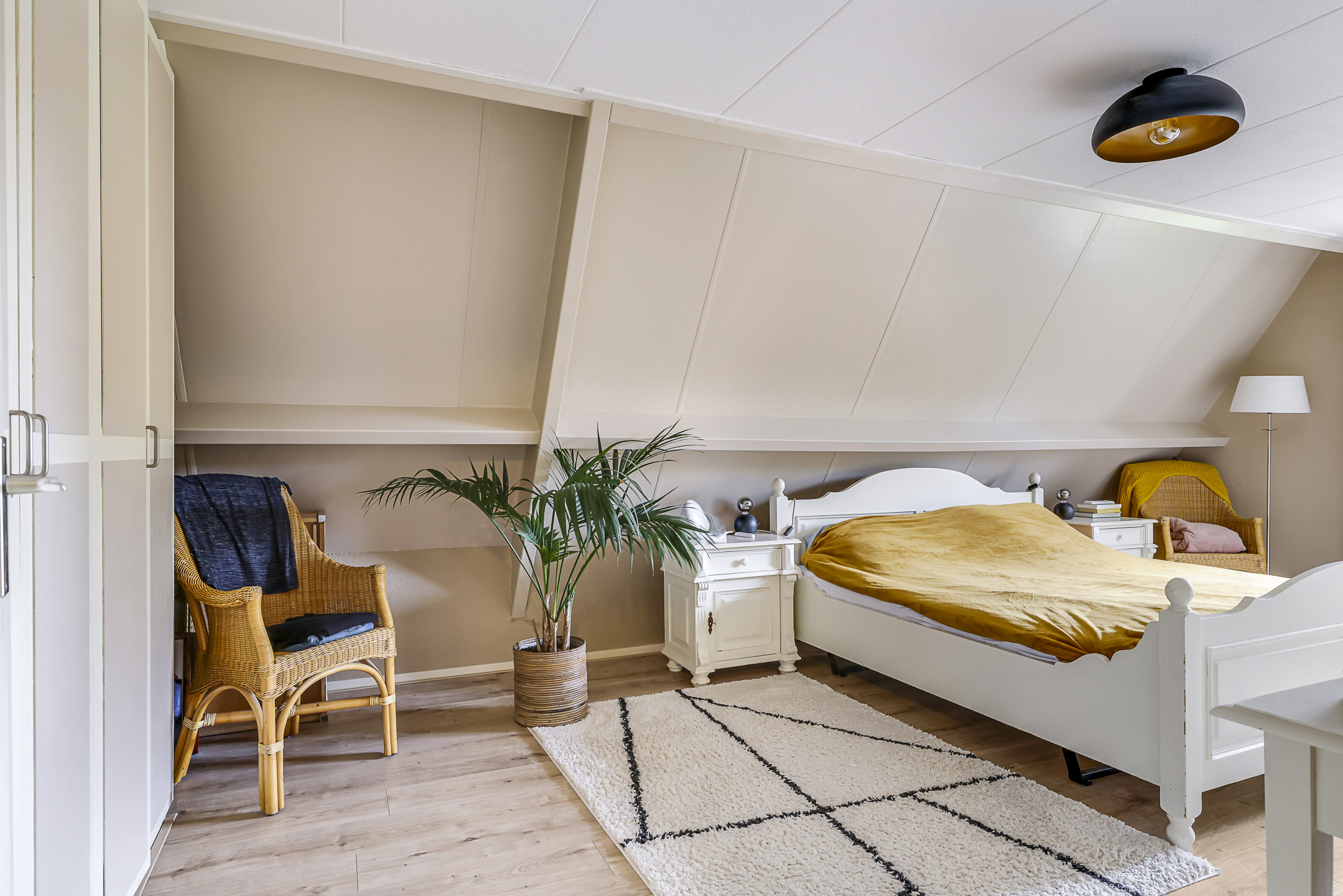 De 2e verdieping is bereikbaar via een vlizotrap en doet dienst als volwaardige zolderverdieping. Met een nokhoogte van 2,6 meter en een volledig bevloerde vloer is dit een verrassende verdieping waar je veel spullen kunt opbergen. Denk daarbij aan bijvoorbeeld wintersportspullen, tuinkussens, seizoenskleding en de kunstkerstboom. Tevens bevindt zich hier de CV-ketel.