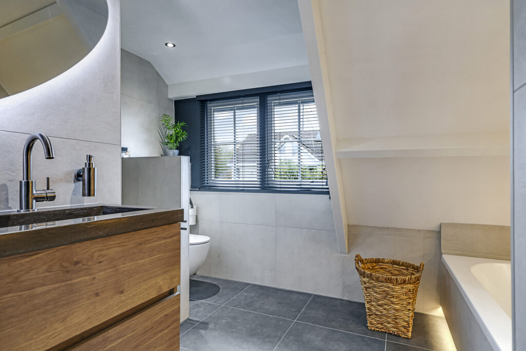 Verder is de badkamer voorzien van een handdoekradiator, mechanische ventilatie en dimbare inbouwspots in het plafond. De gekozen materialen en verlichting maken dit tot een badkamer op hoog niveau, een plek om echt te ontspannen. De aanwezige vloerverwarming maakt de badkamer extra aangenaam. We durven wel te stellen dat hier het maximale uit de badkamer is gehaald.