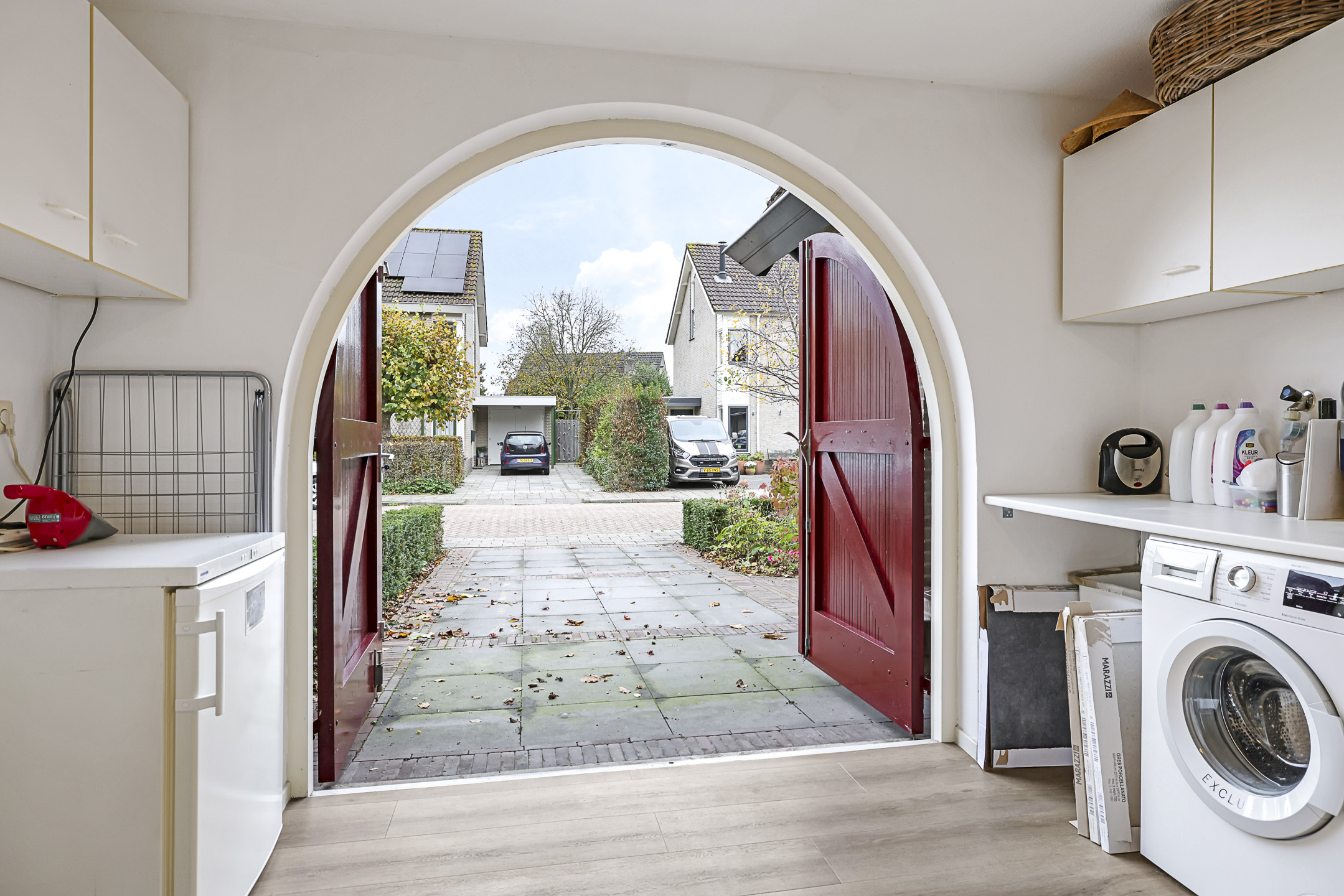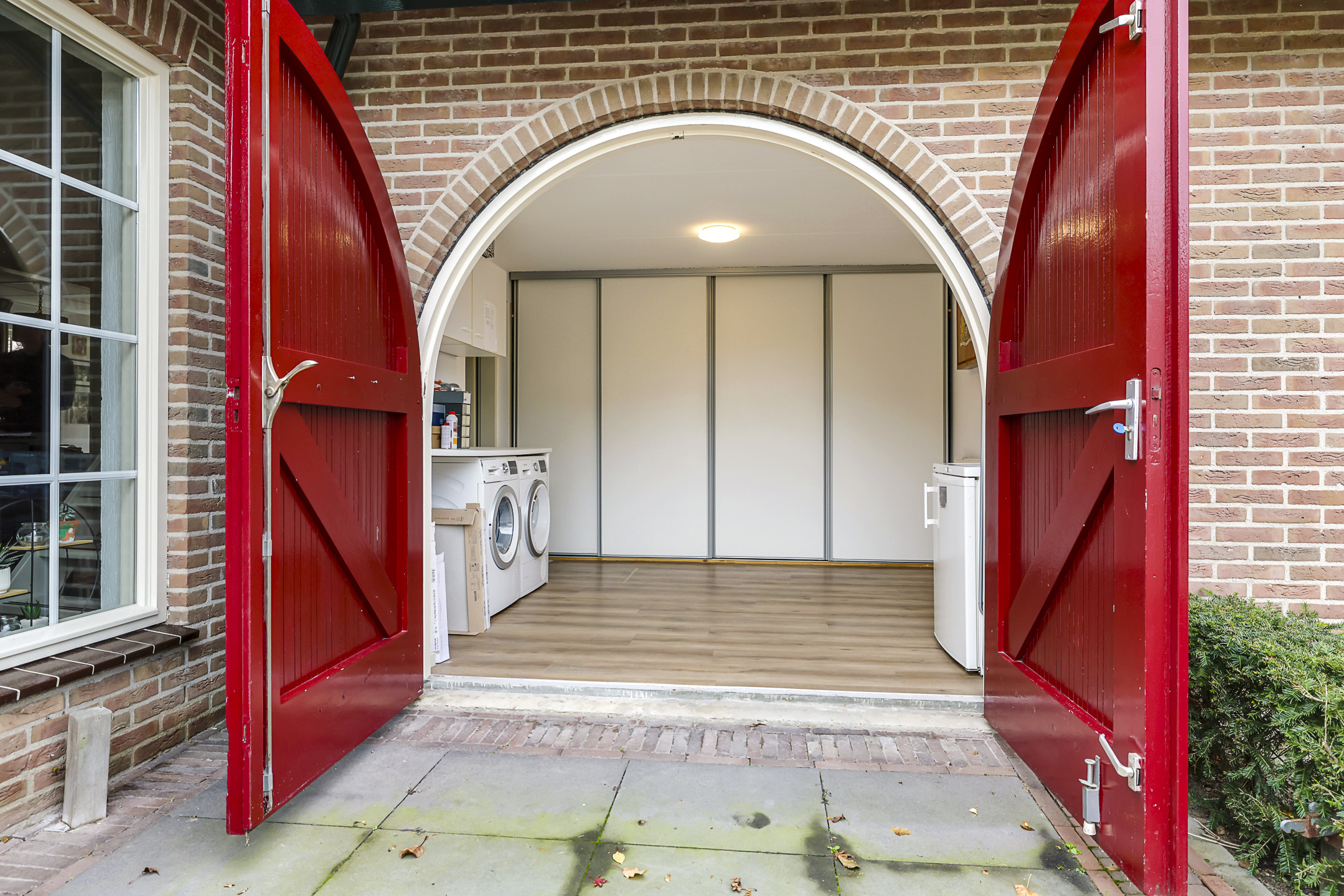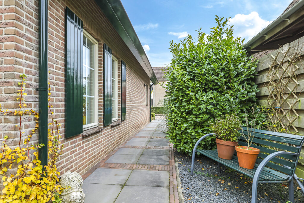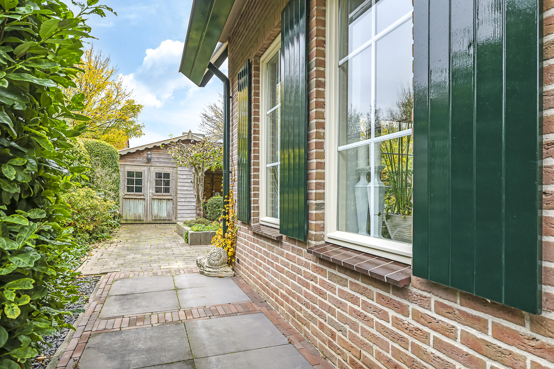 Langs de woning is een achterom aanwezig, waardoor de tuin goed bereikbaar is. De woning is voorzien van camera’s aan voor- en achterzijde, sierluiken en fraaie ronde toogdeuren die bijdragen aan het karaktervolle geheel.