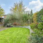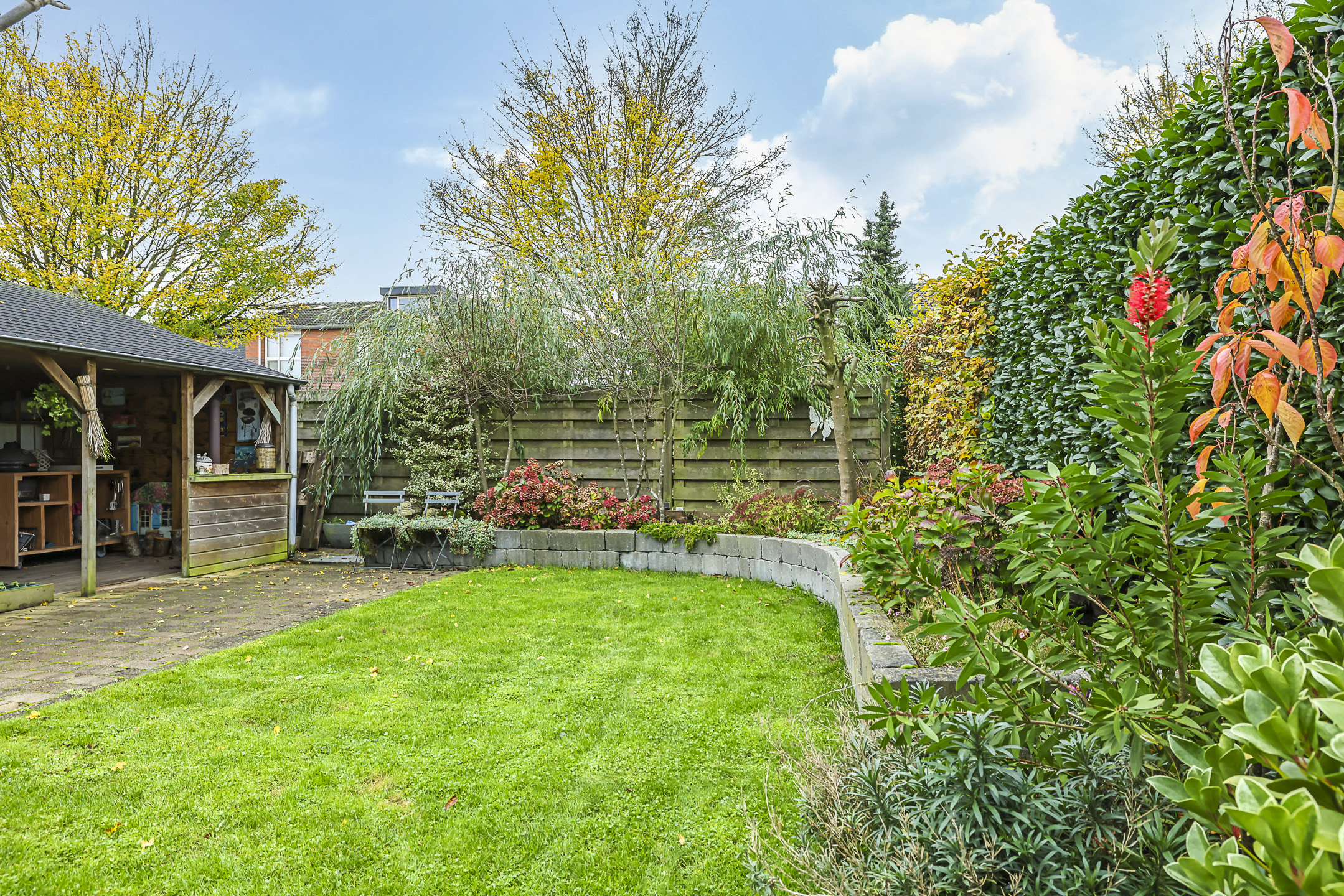 De tuin is met zorg aangelegd en biedt veel privacy dankzij de vrije ligging aan de achterzijde, er loopt een sloot achter het perceel met een groene buffer van bomen. De achtertuin is op het zuidwesten georiënteerd, wat zorgt voor veel zonuren. De tuin is maar liefst 13,5 meter breed hetgeen aanzienlijk breder is dan de gemiddelde achtertuin in het segment.