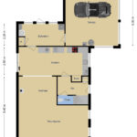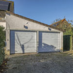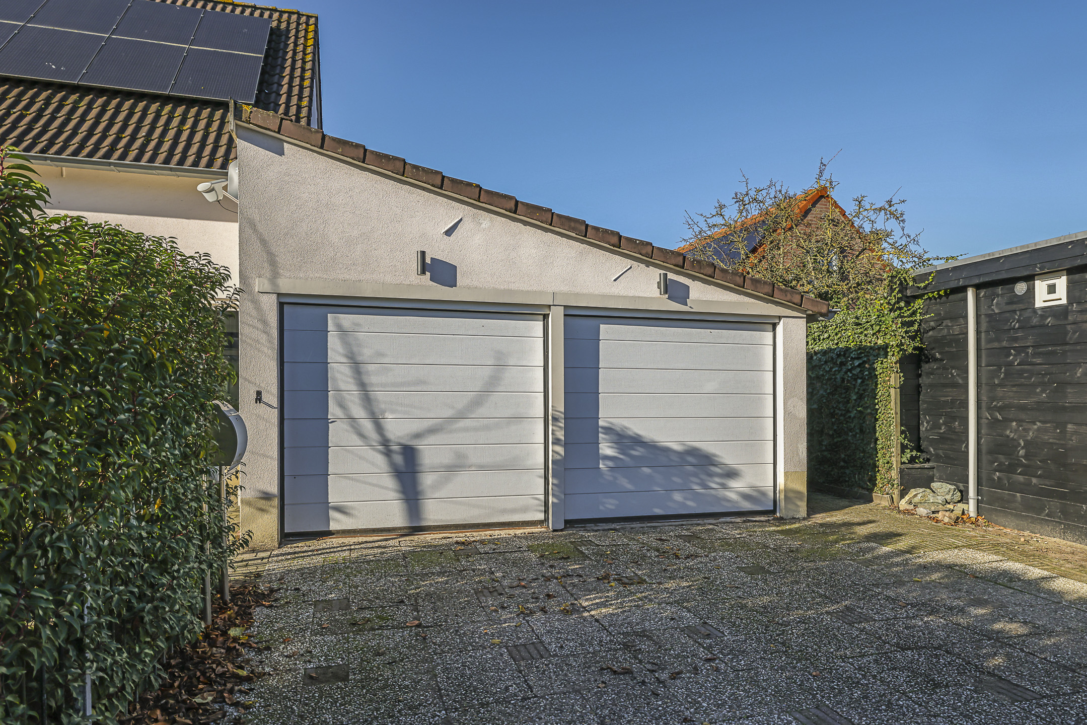 Zoals eerder al vermeld is de garage van binnenuit te bereiken. Een het is geen standaard garage aangezien het hier een dubbele garage betreft (5m breed en 5,3m diep). Twee elektrisch bedienbare sectionaaldeuren naast elkaar geven toegang tot 2 auto’s. Hierdoor is de garage voor meerdere doeleinden geschikt. Heb je een voorliefde voor oldtimers, heb je één of meerdere motoren of ben je een klusser die ruimte nodig heeft voor een flinke werkbank, dan zal je deze garage zeker aanspreken. Ramen zorgen voor de nodige lichtinval, een zijdeur geeft toegang tot de achtertuin en er is een wateraansluiting aanwezig. De vloer is bovendien van beton en het dak is geïsoleerd. Bovendien heeft de garage een hellend dak die met dakpannen is gedekt. Hierdoor is er voor een deel een opbergzolder aanwezig. Ook vinden we in de garage de CV-ketel en warmtepompboiler terug. Dus mocht je de garage willen verwarmen, dan is dat eenvoudig te realiseren.